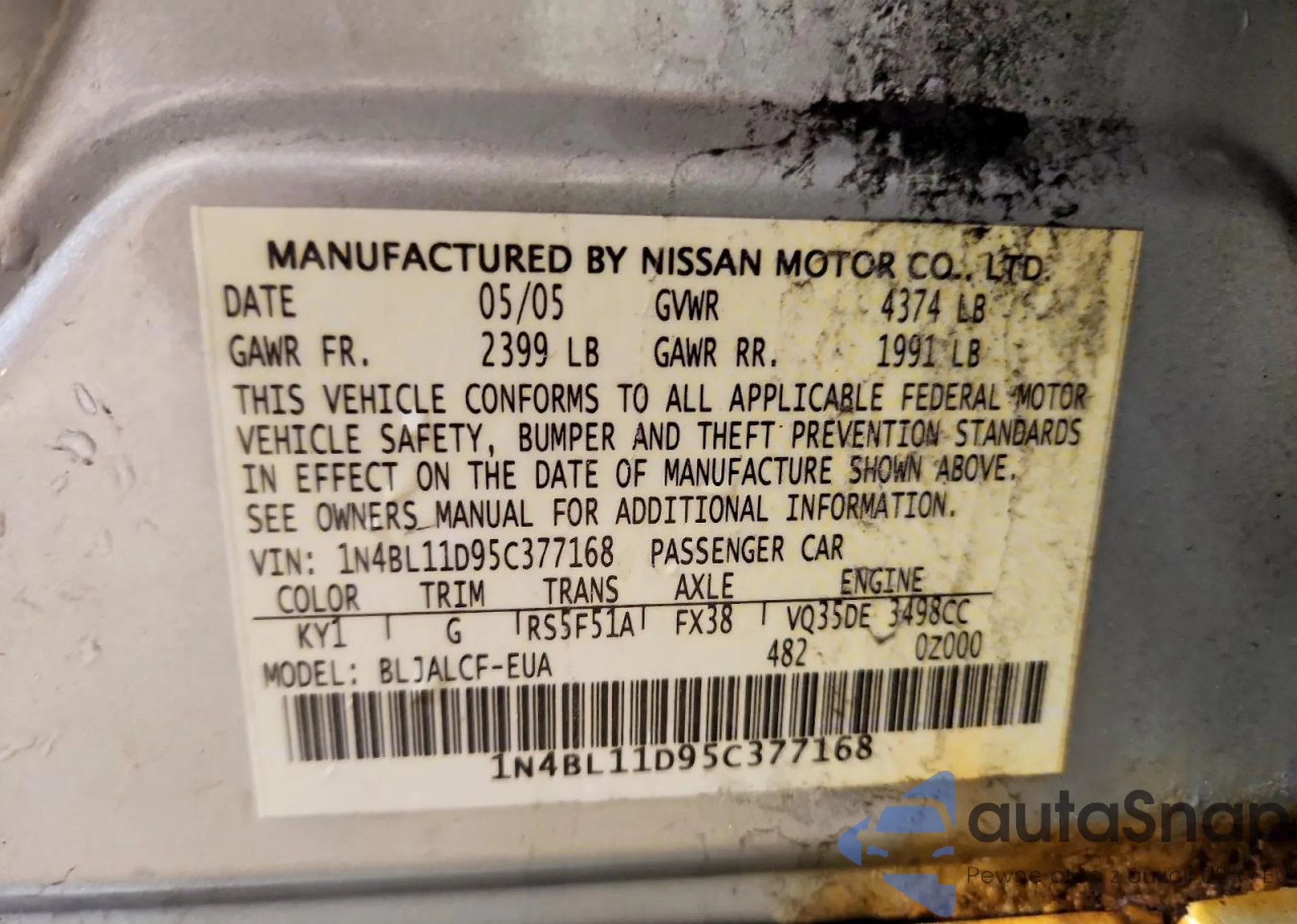 • VIN 1N4BL11D95C352321