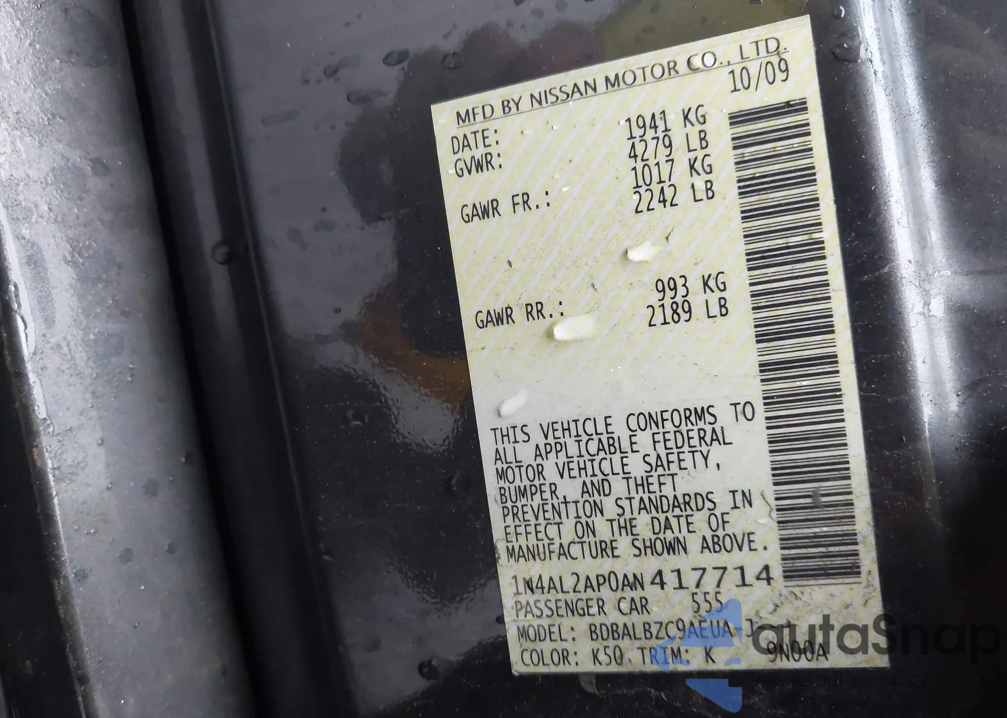 LOT: 44002979 VIN: 1N4AL2AP0AN417714