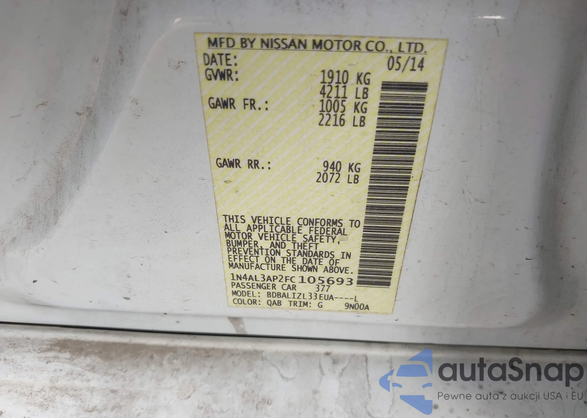 LOT: 44143216 VIN: 1N4AL3AP2FC105693
