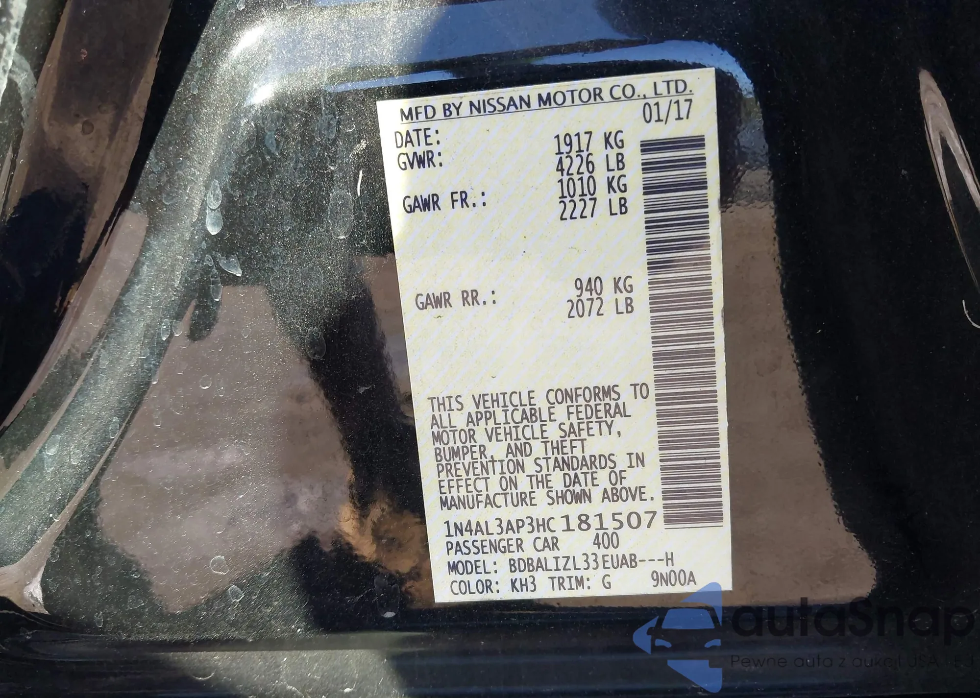 LOT: 43500537 VIN: 1N4AL3AP3HC181507