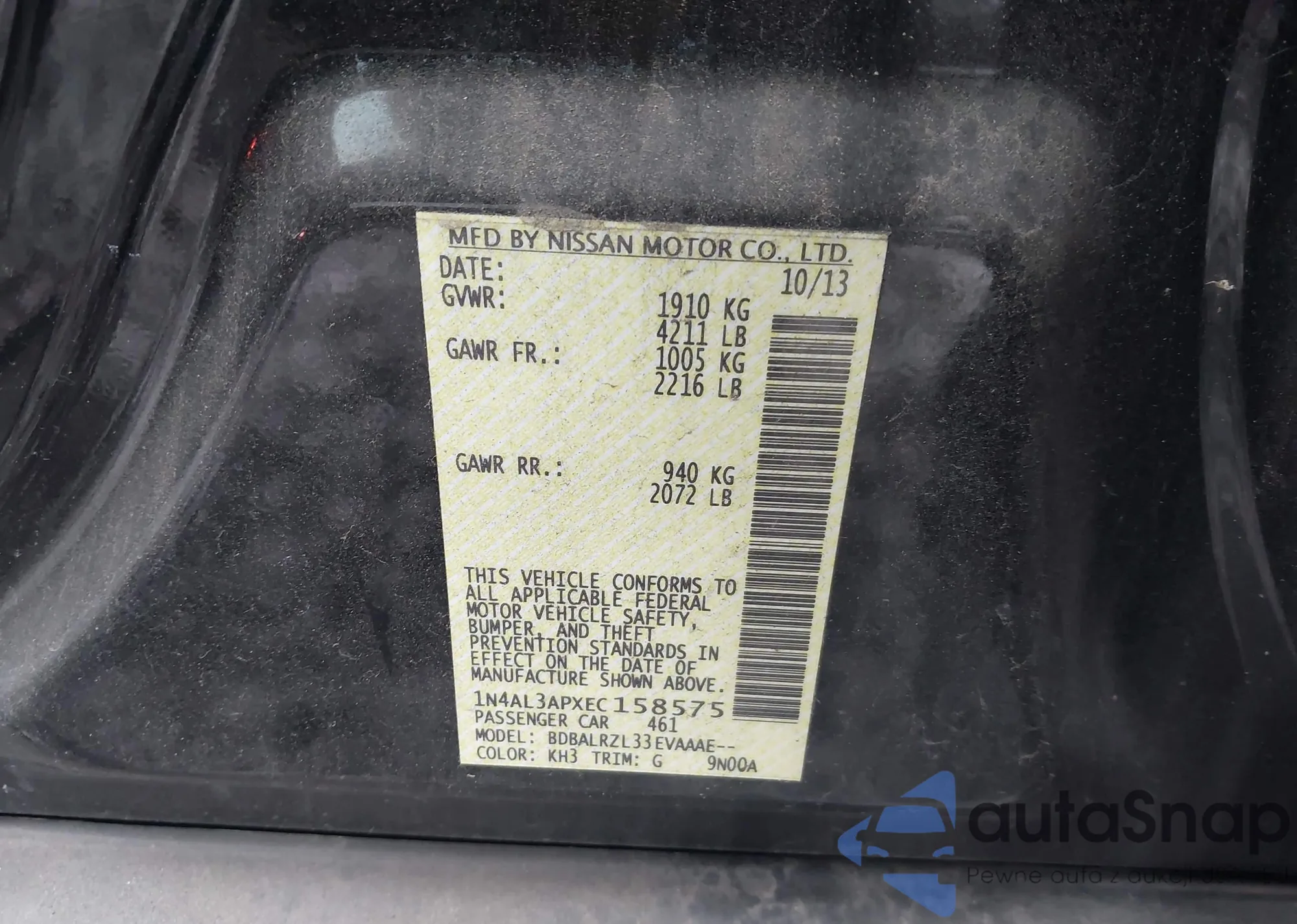 LOT: 43836956 VIN: 1N4AL3APXEC158575