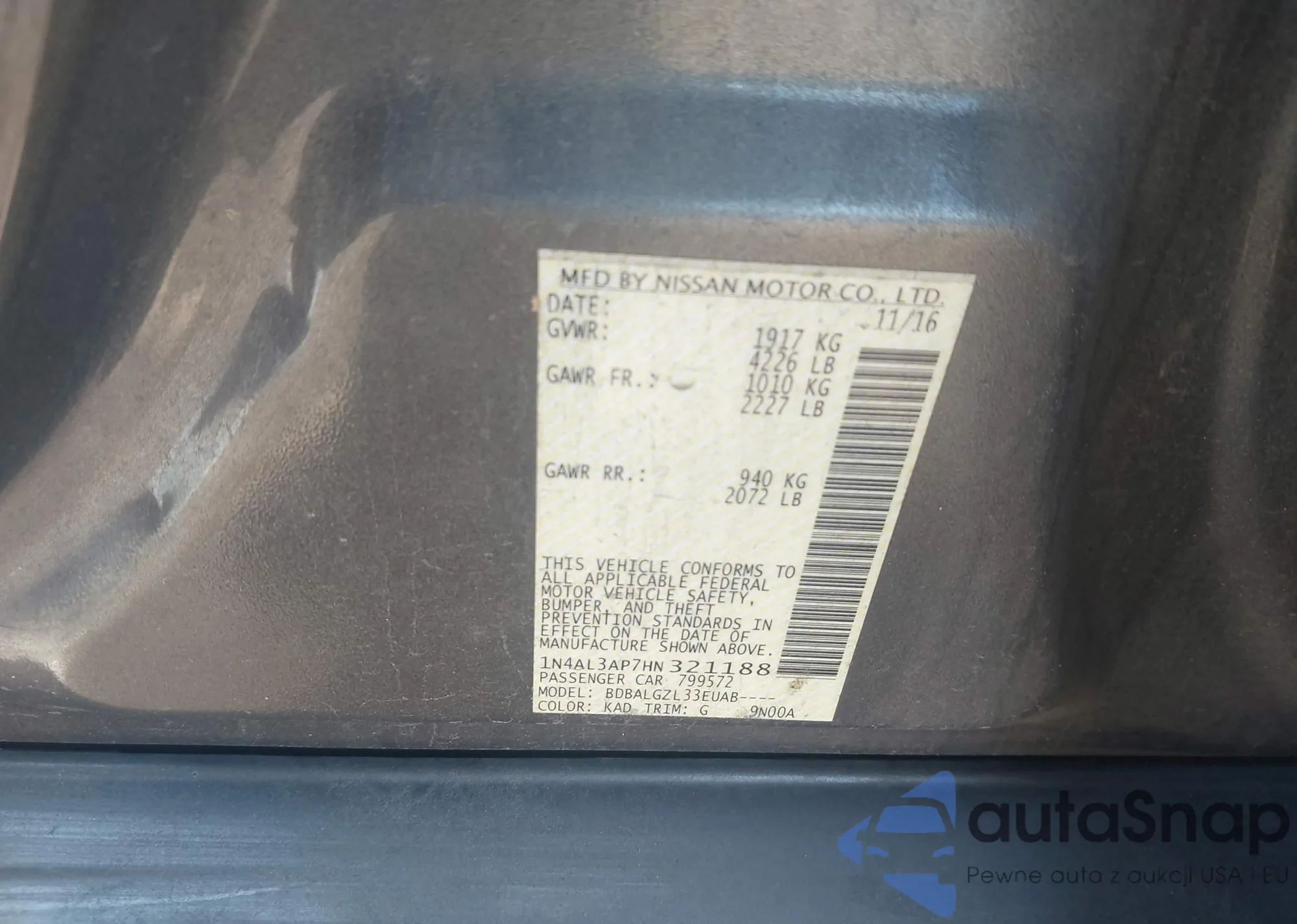 • VIN 1N4AL3AP7HN321188
