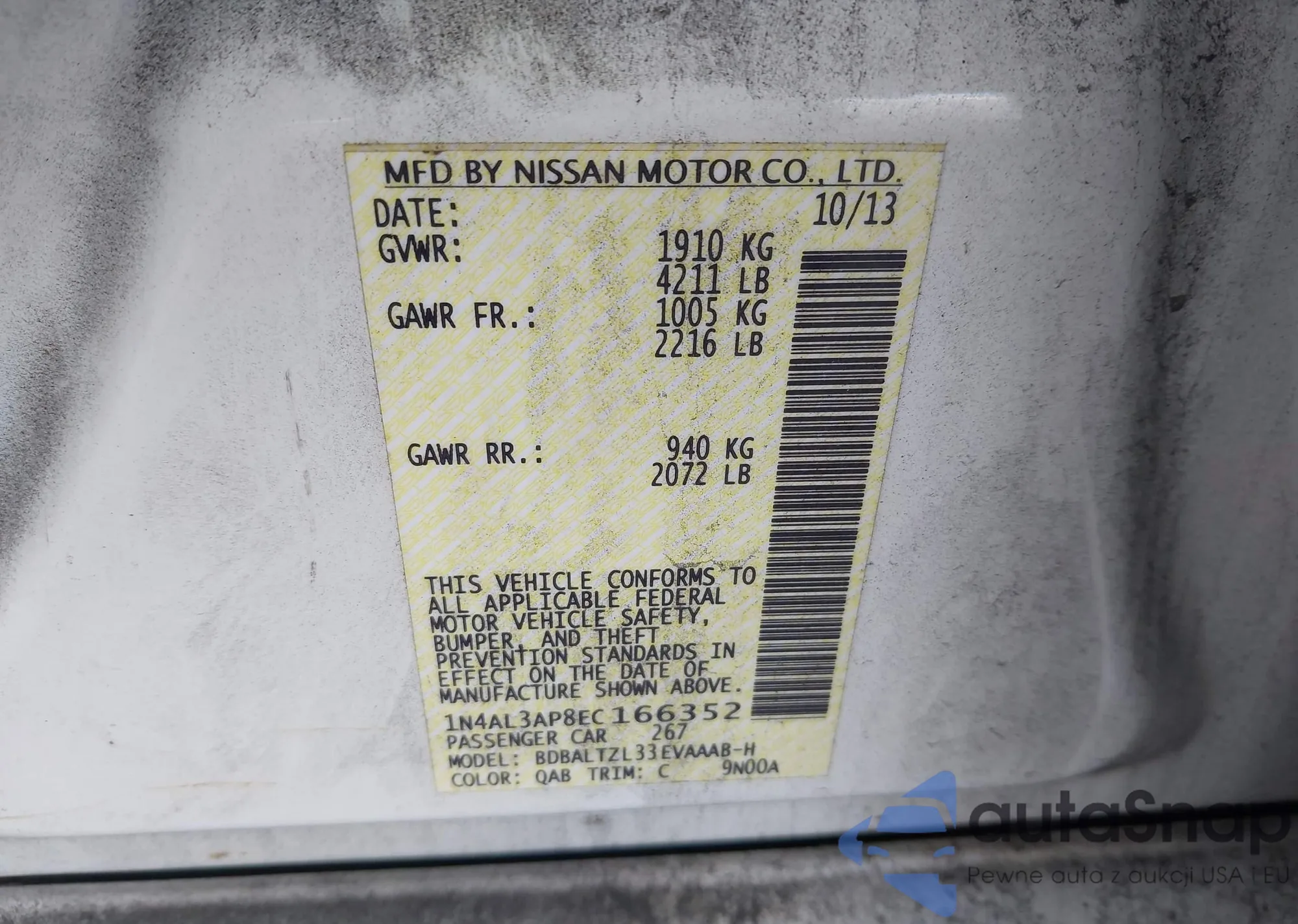 LOT: 44148246 VIN: 1N4AL3AP6EC165409
