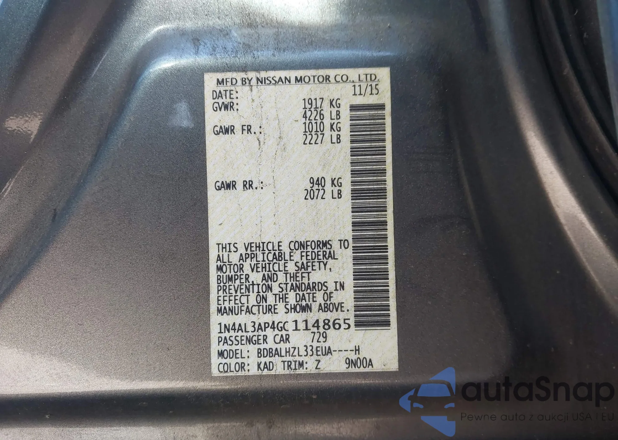 LOT: 44000637 VIN: 1N4AL3AP0FN878716