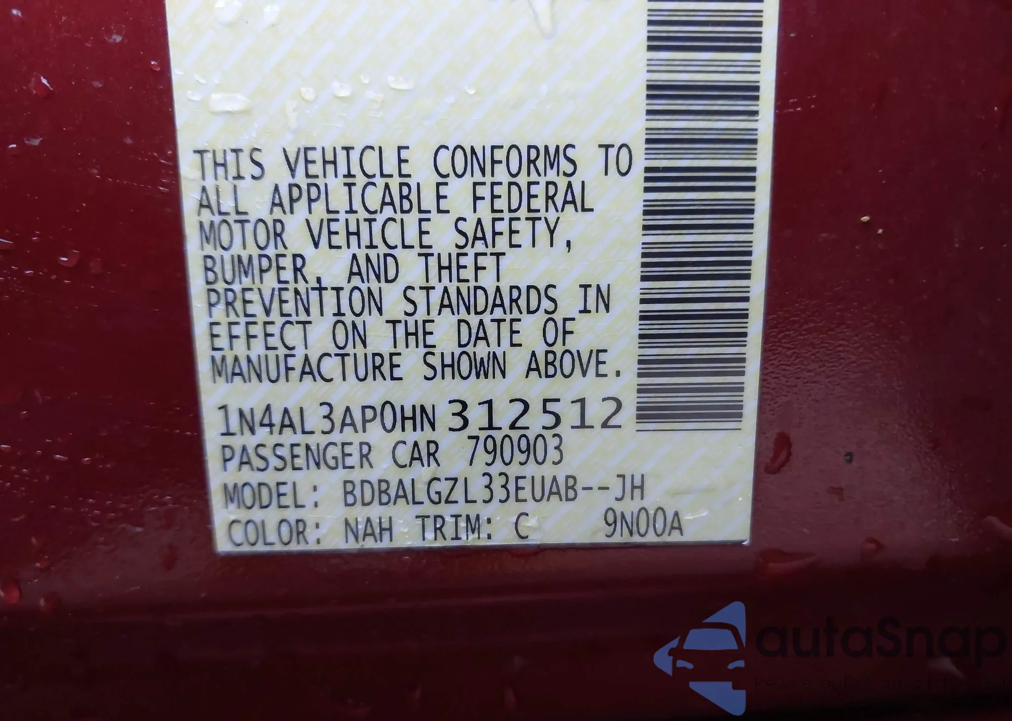 LOT: 43480148 VIN: 1N4AL3AP0HN312512