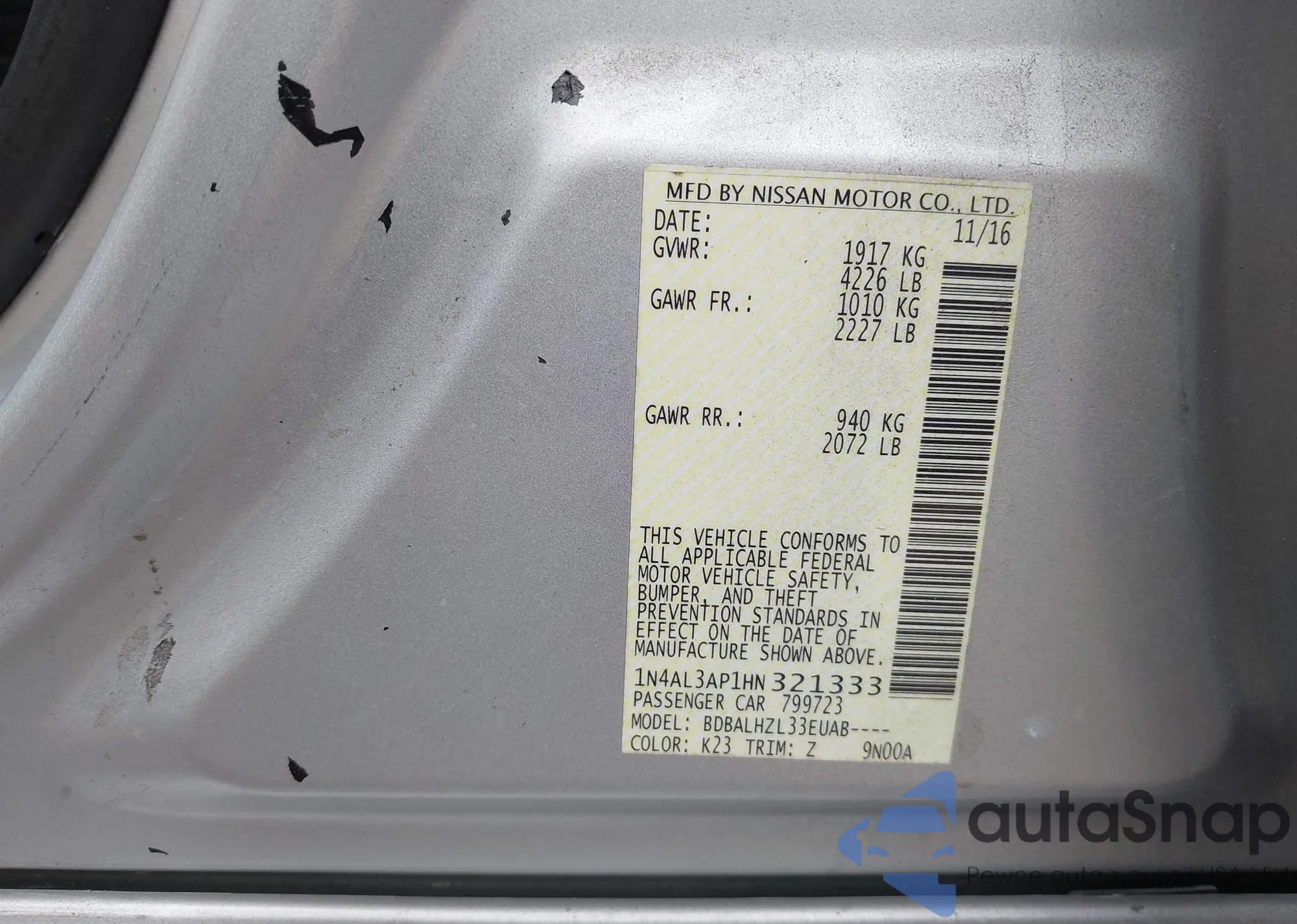 • VIN 1N4AL3AP1HN321333