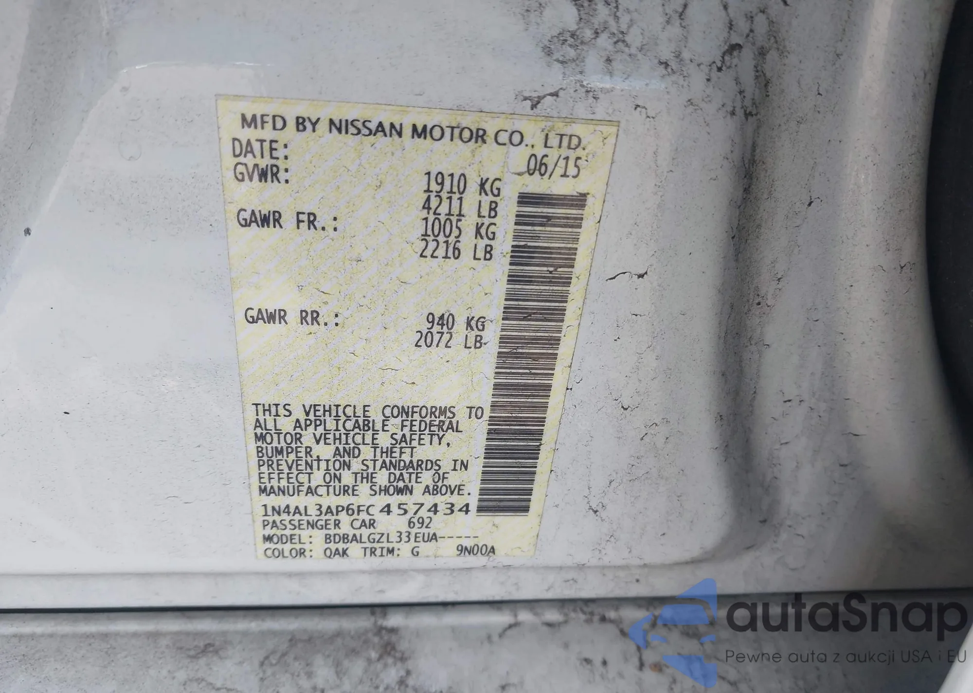 LOT: 44185975 VIN: 1N4AL3AP6FC457434