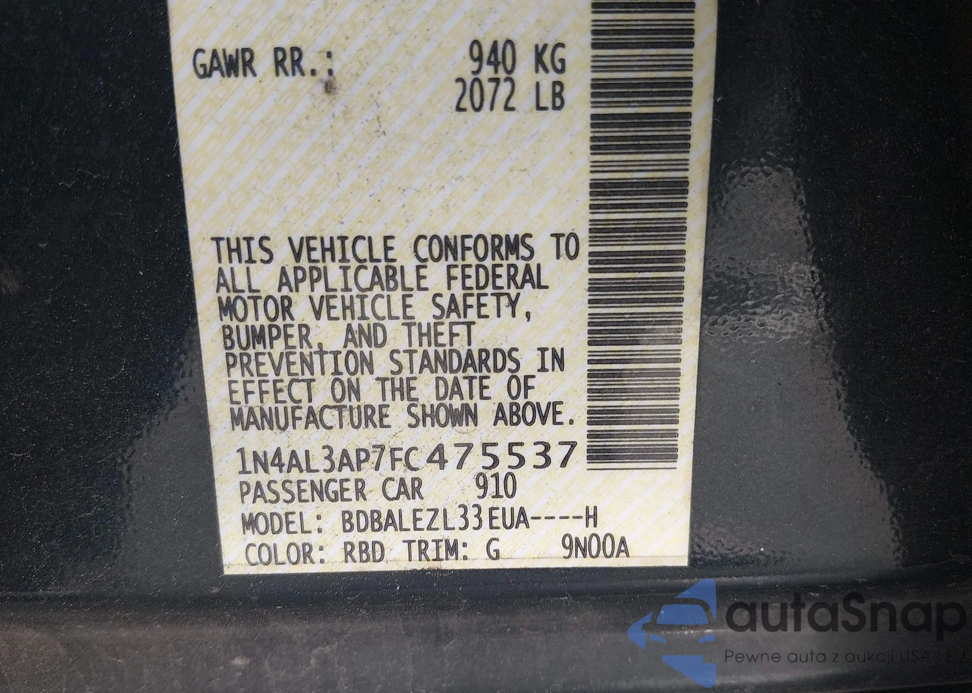 • VIN 1N4AL3AP7FC475537