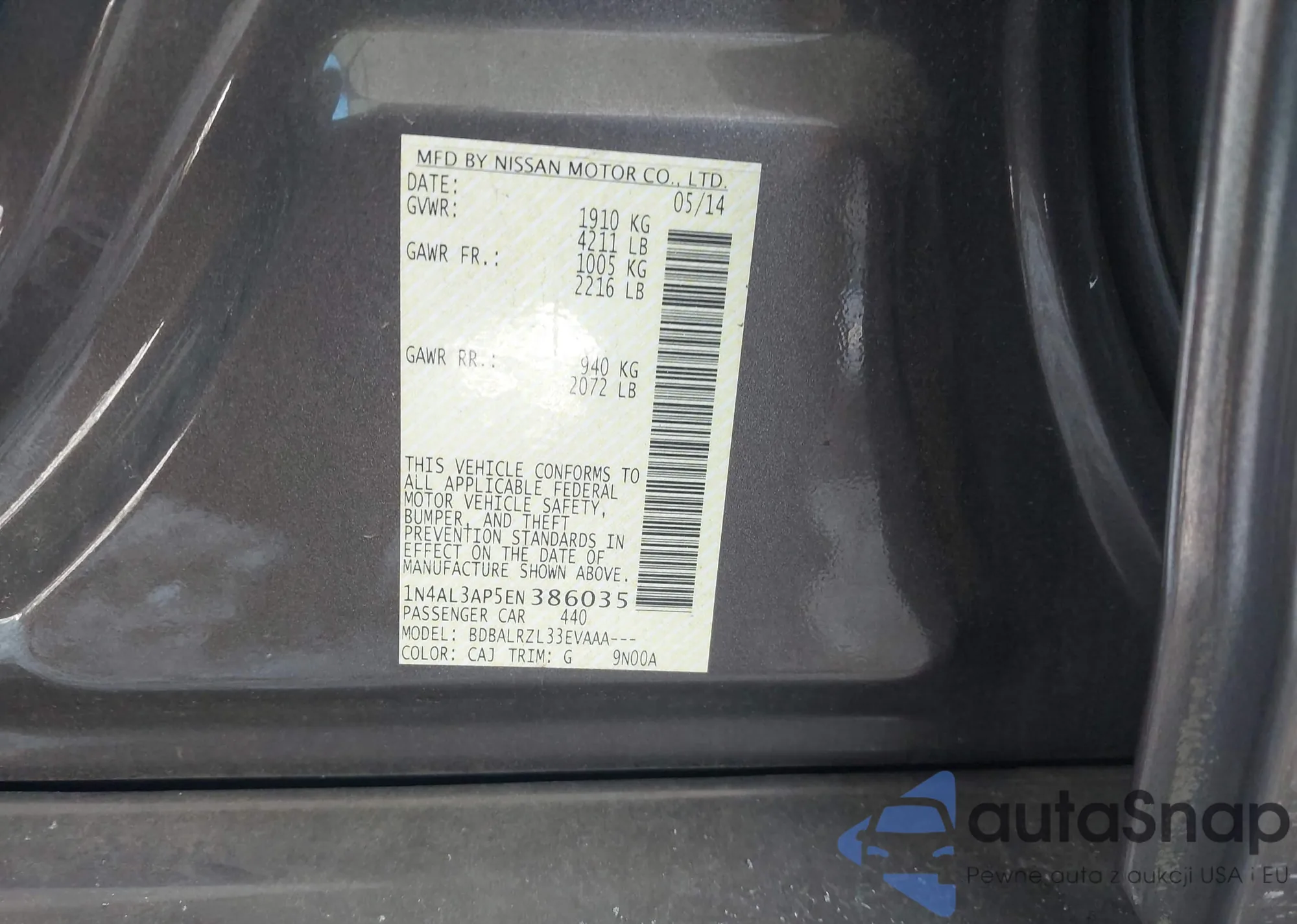 • VIN 1N4AL3AP5EN386035