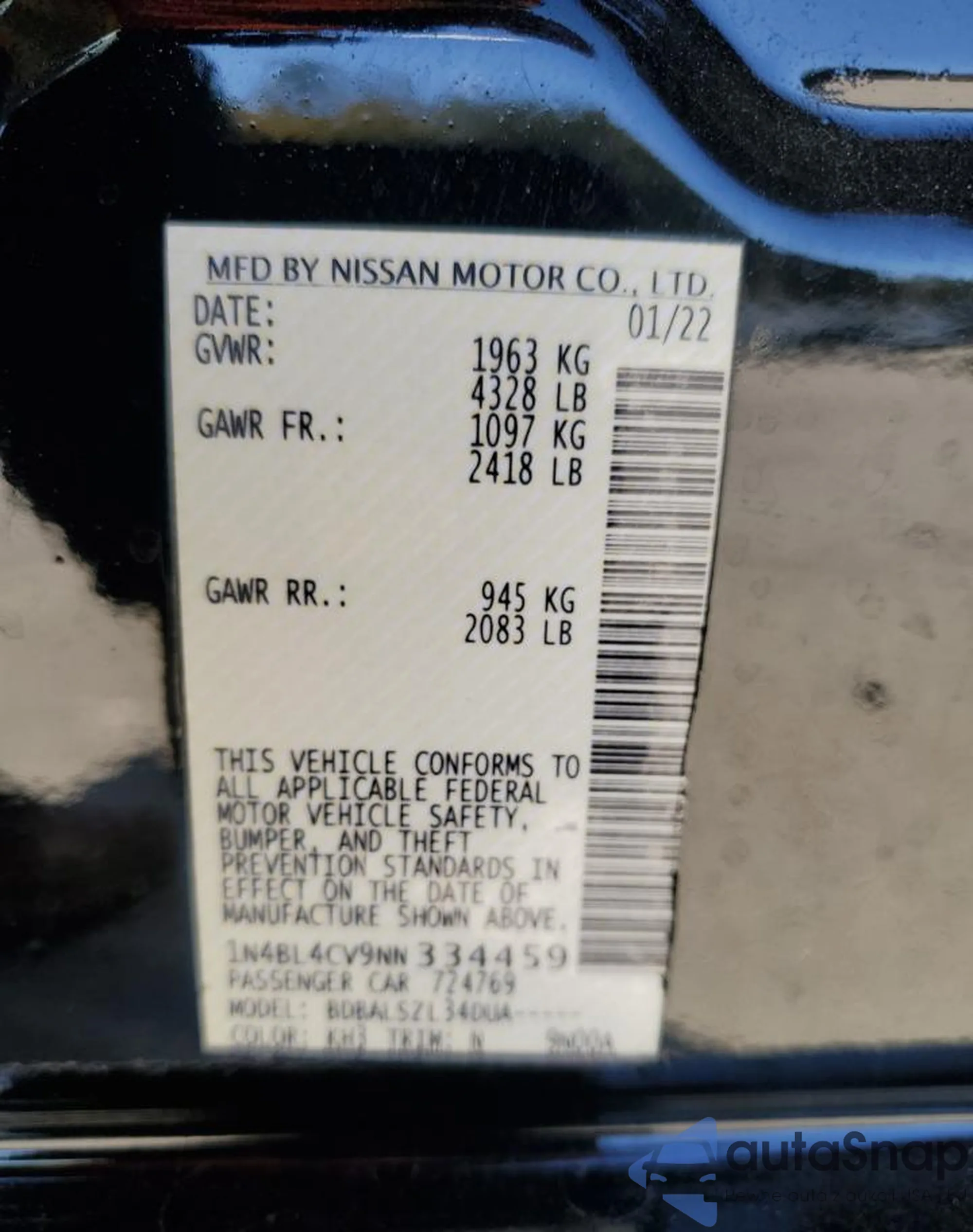 • VIN 1N4BL4CV9NN334459