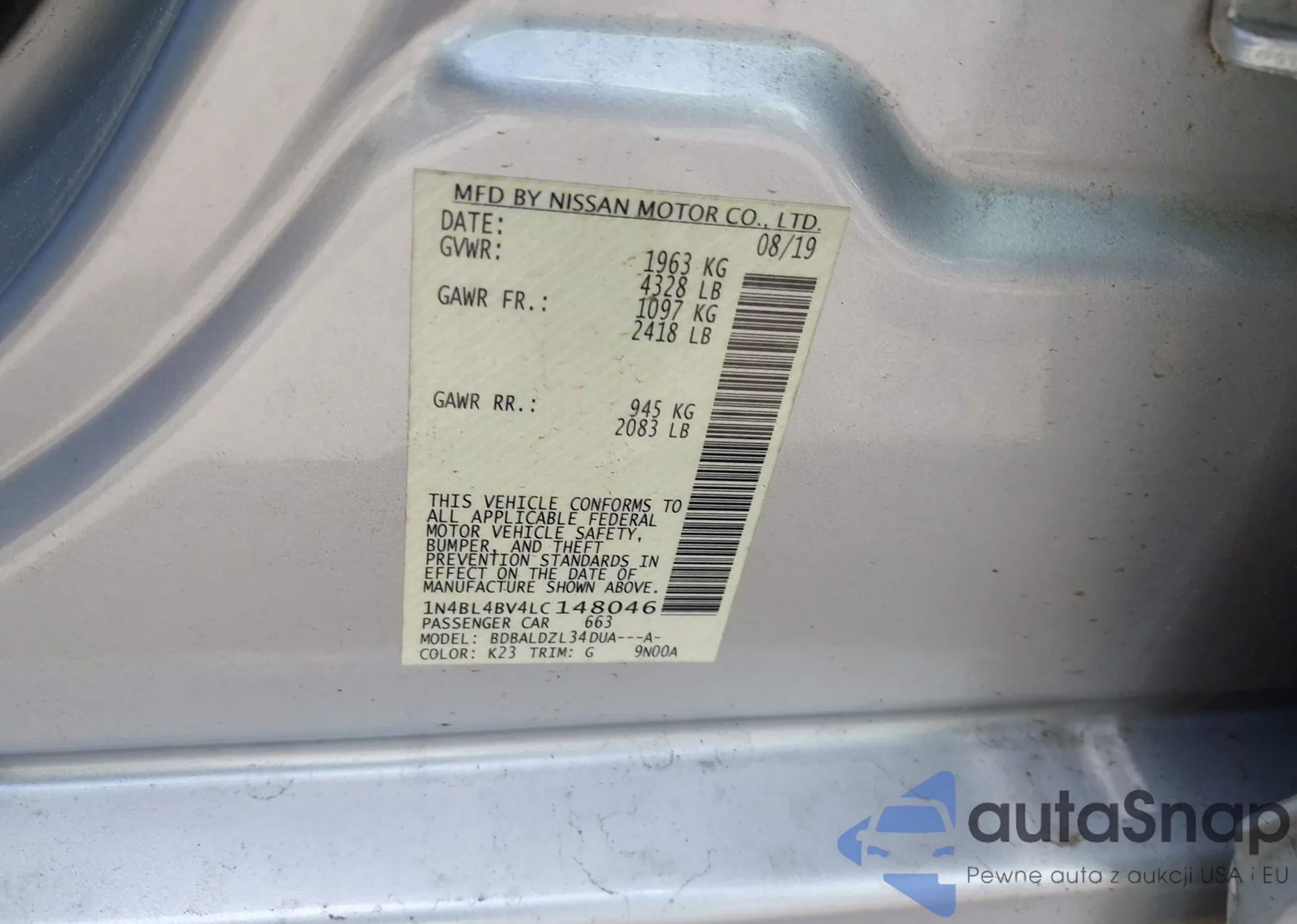 • VIN 1N4BL4BV4LC148046