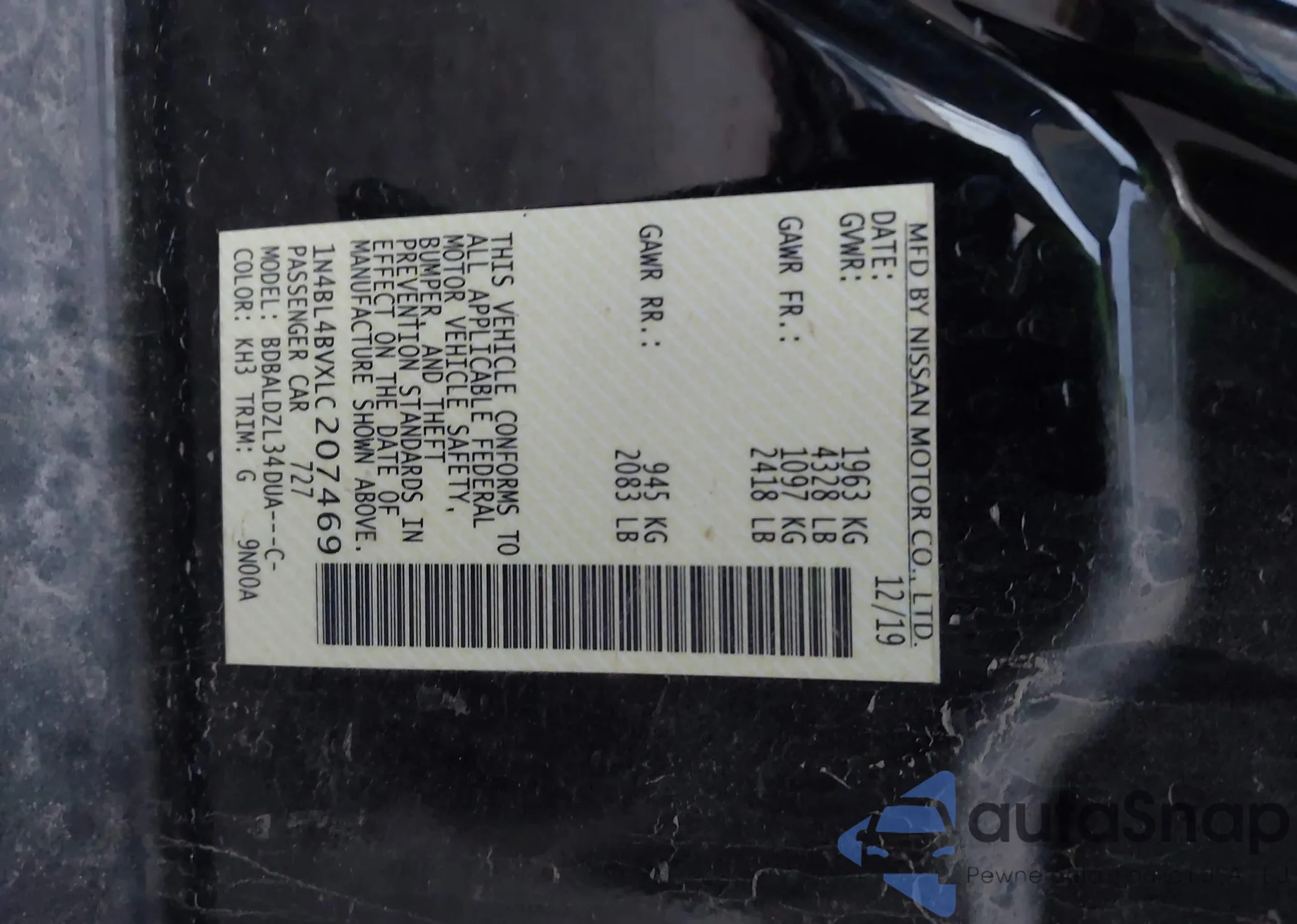 • VIN 1N4BL4BVXLC207469