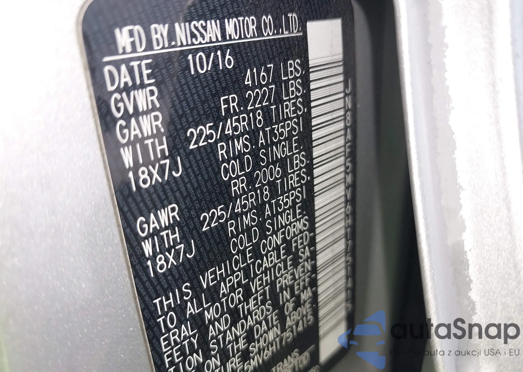 LOT: 43829344 VIN: JN8AF5MR5FT507514