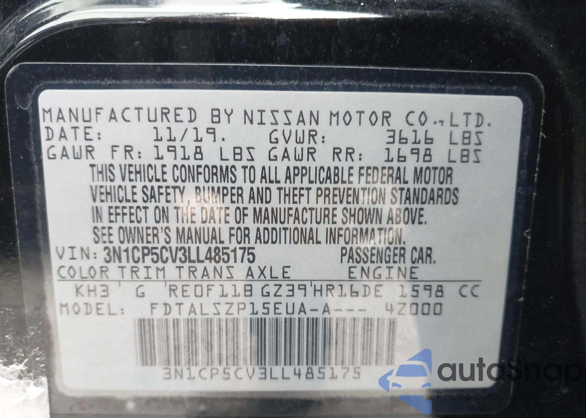 • VIN 3N1CP5BV4LL552867