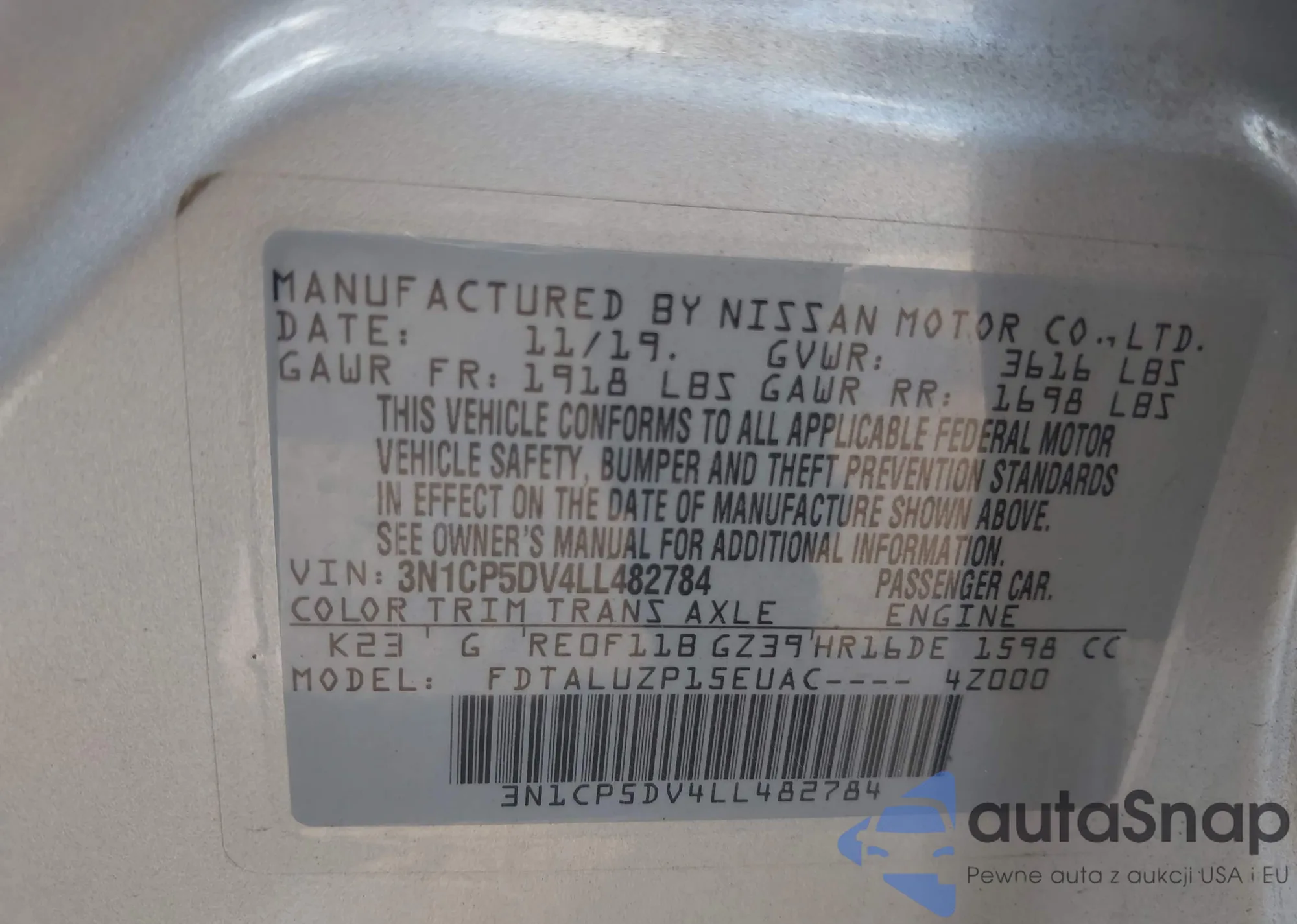 • VIN 3N1CP5DV4LL482784