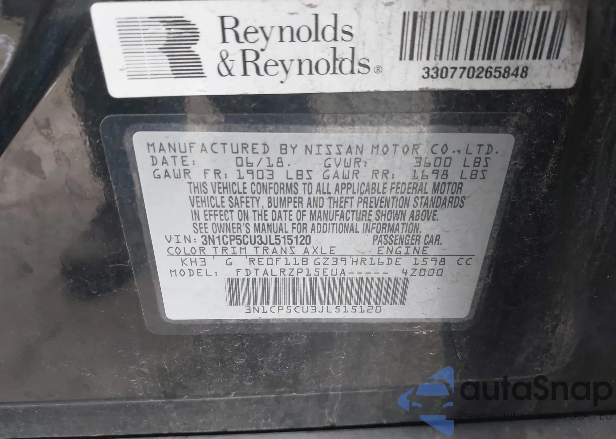 • VIN 3N1CP5CU3JL515120