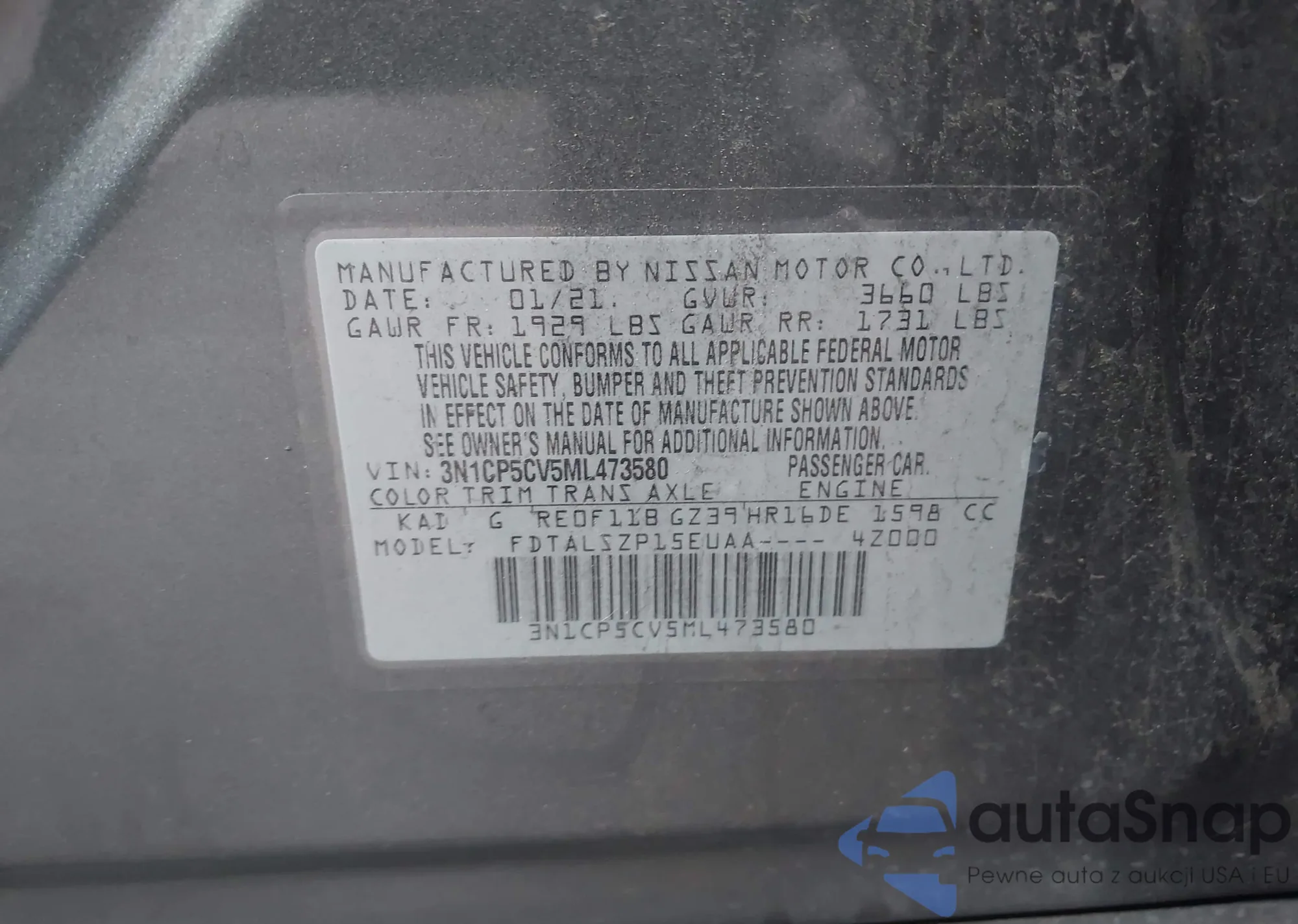 • VIN 3N1CP5CV5ML473580