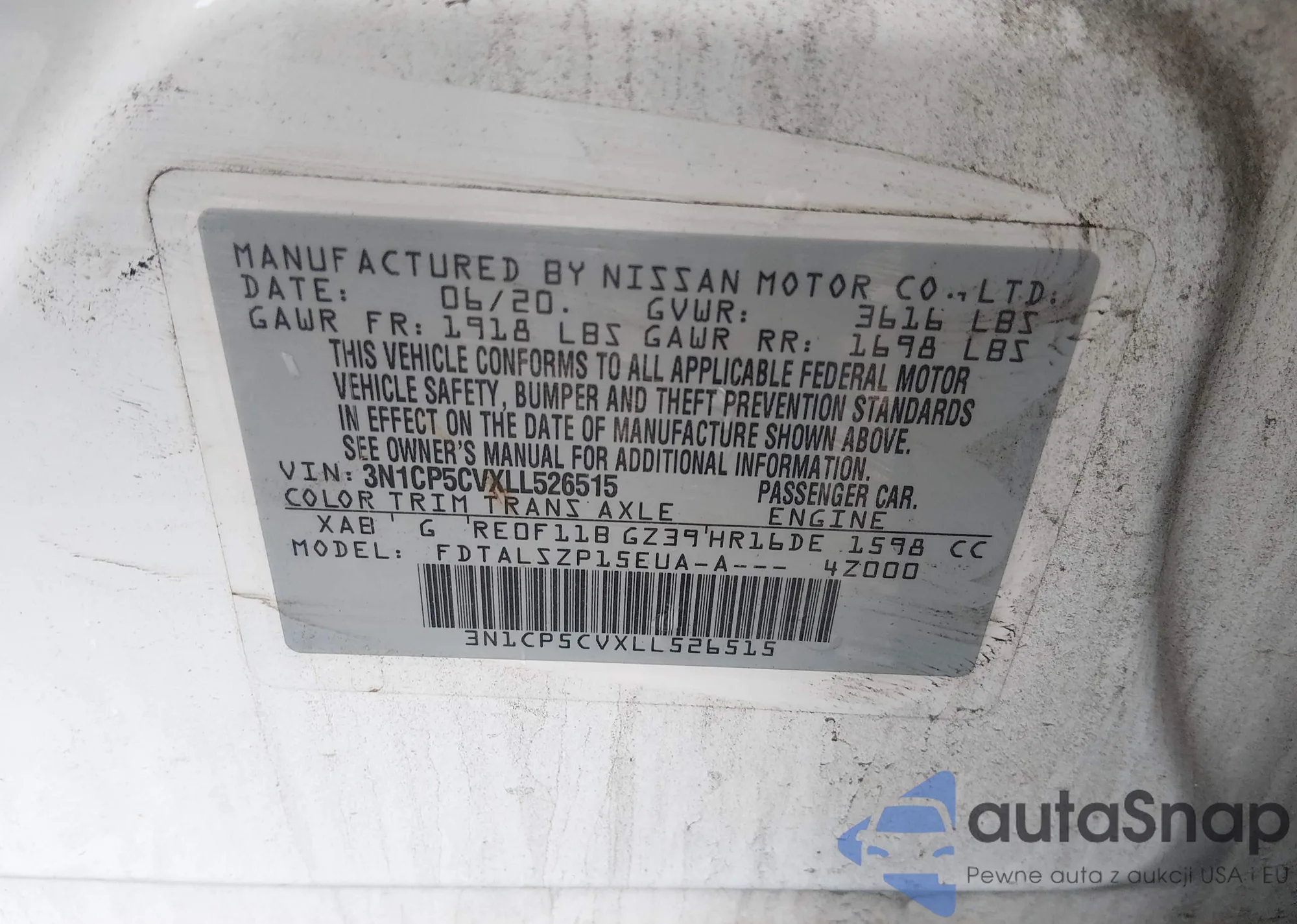 • VIN 3N1CP5DV5LL580352