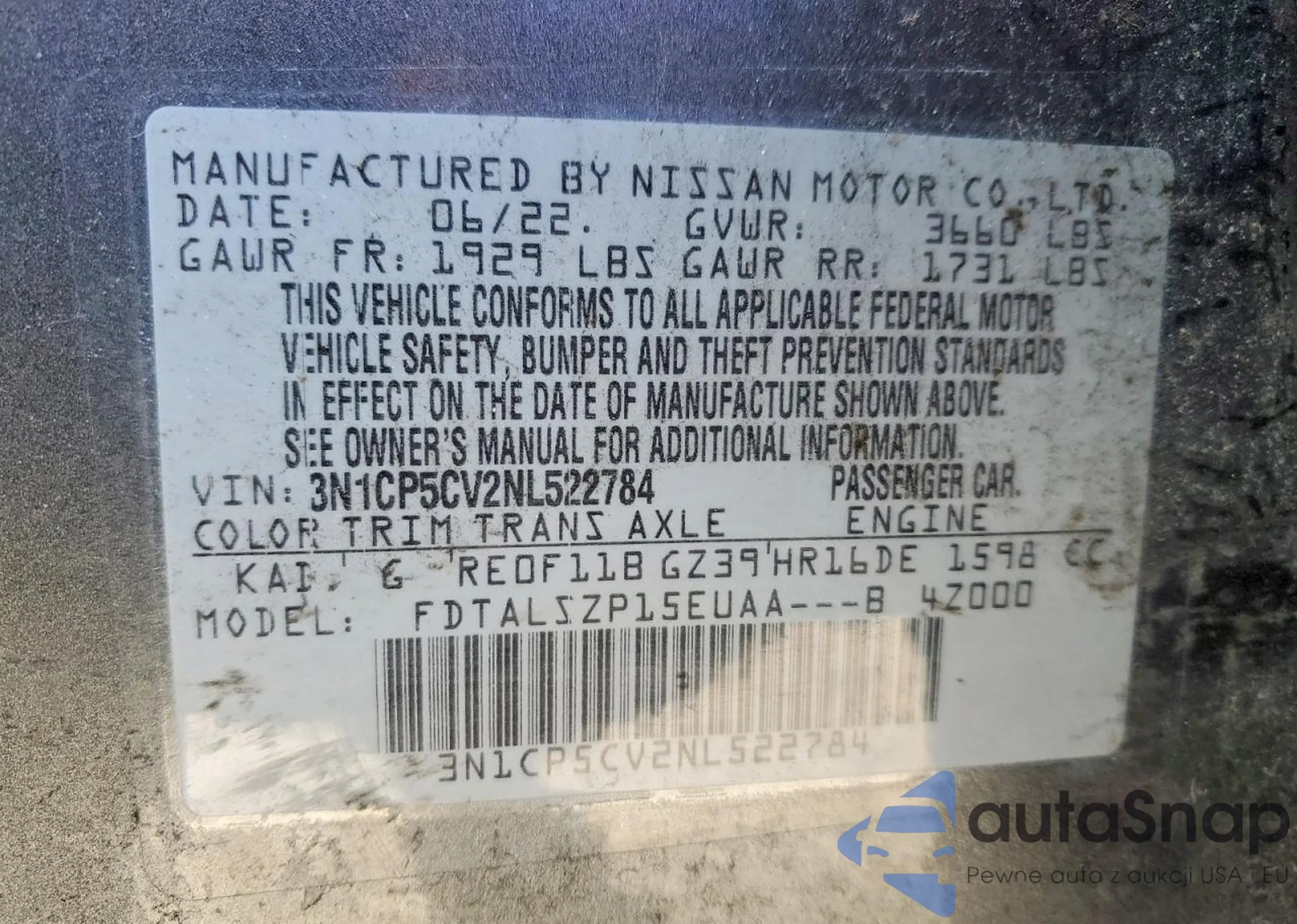 • VIN 3N1CP5DV5NL477483
