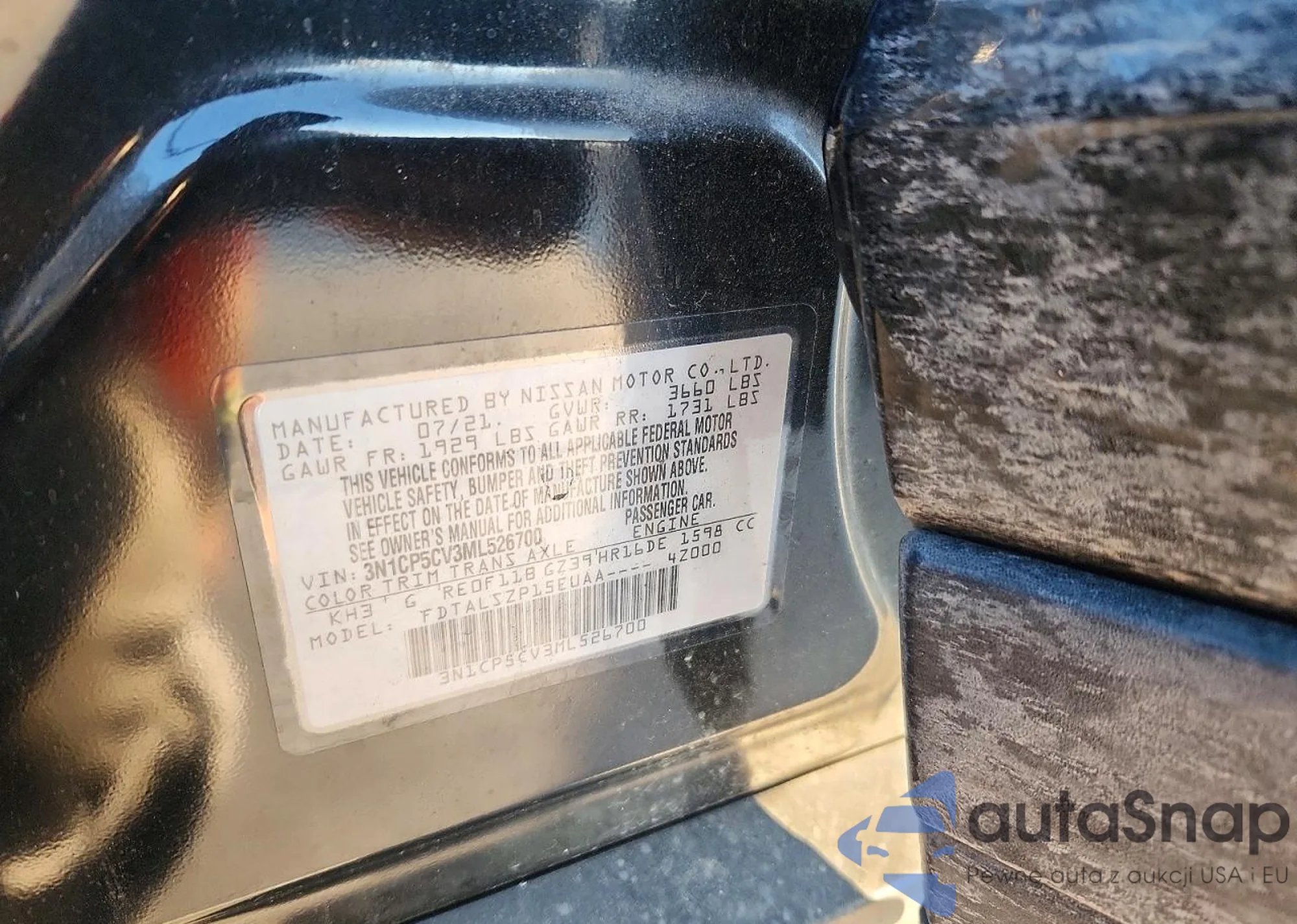 LOT: 74981805 VIN: 3N1CP5CV3ML526700