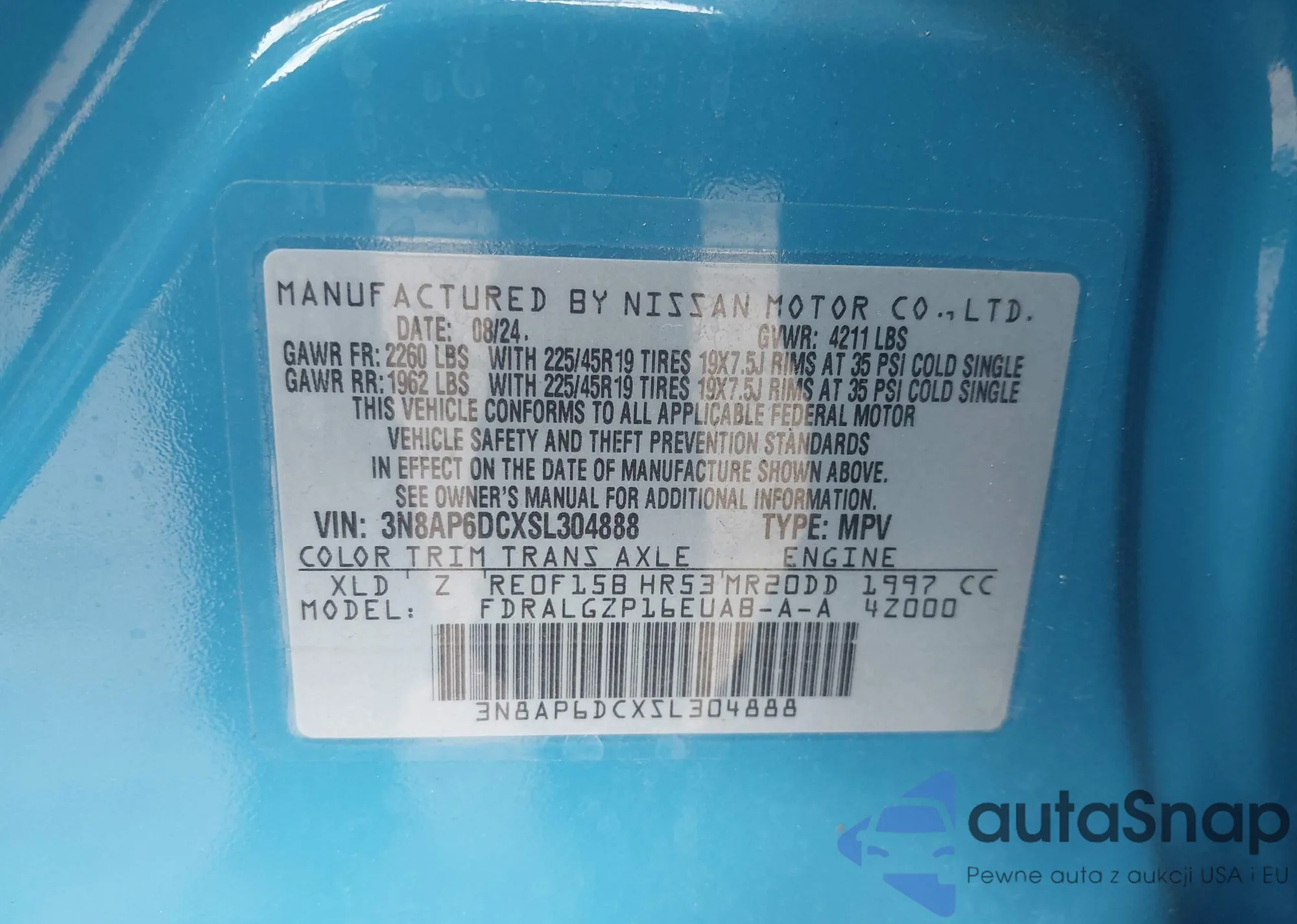 • VIN 3N8AP6DCXSL304888