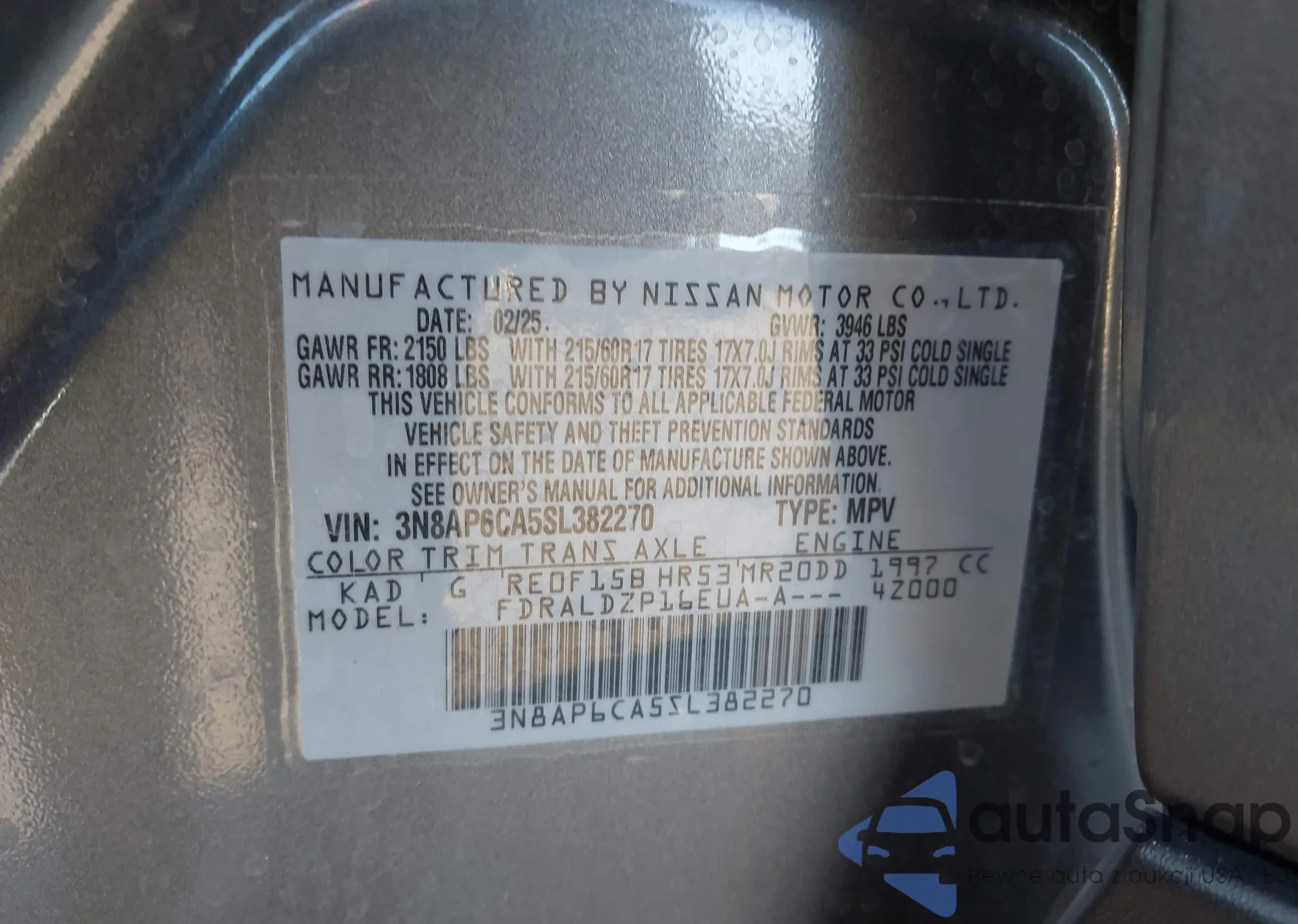 LOT: 43879451 VIN: 3N8AP6CA5SL382270