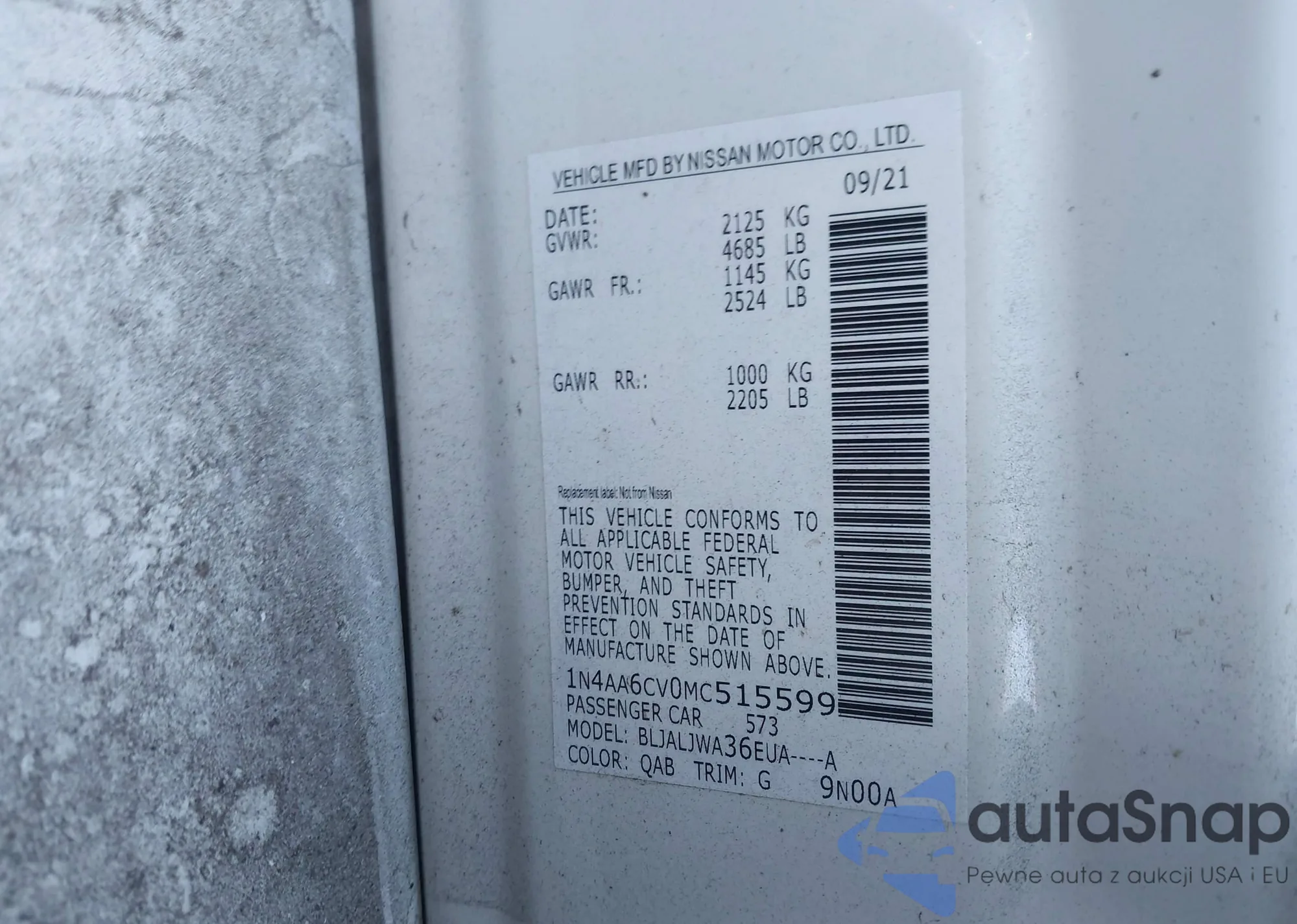 • VIN 1N4AA6EV9MC504422
