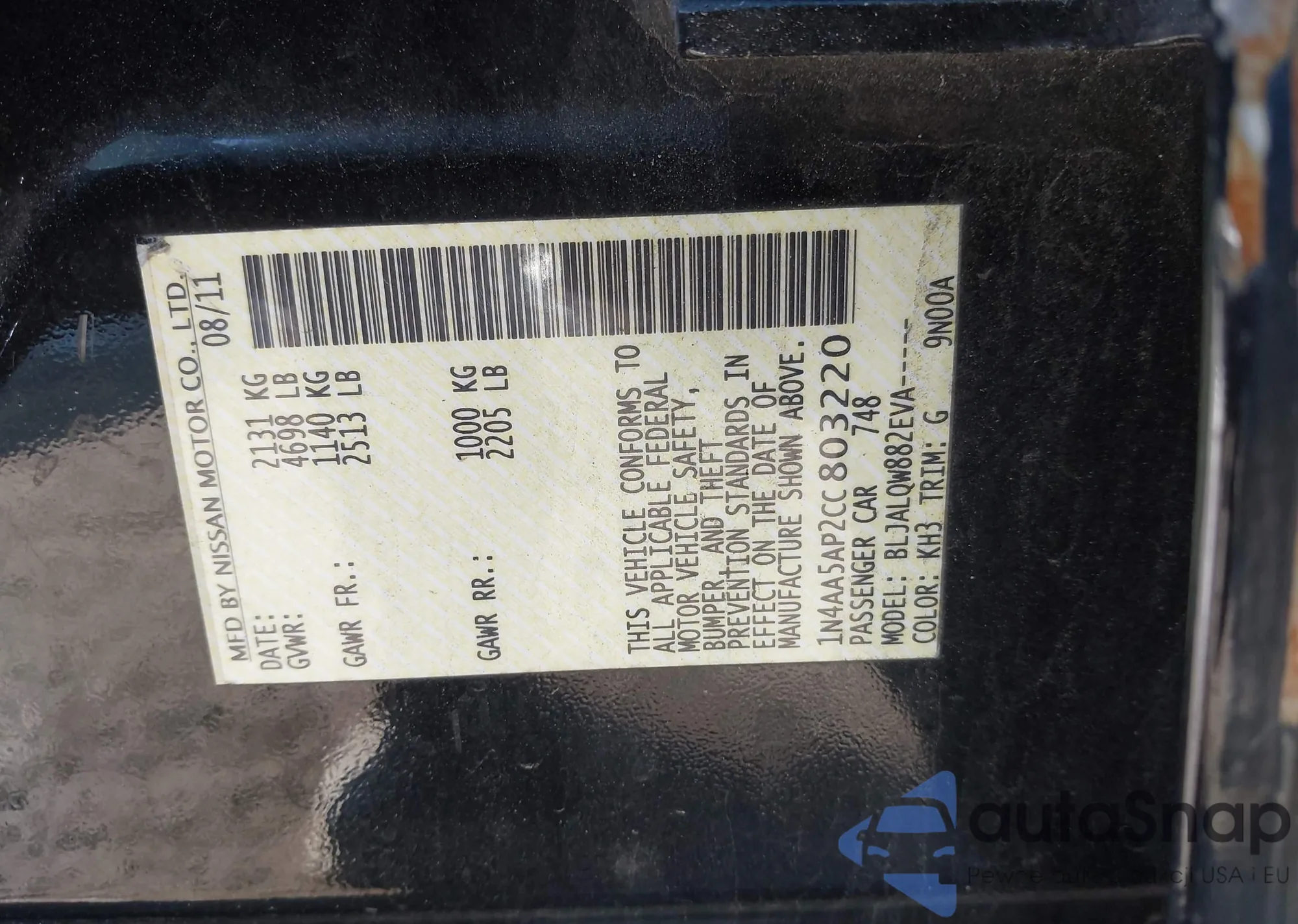• VIN 1N4AA5AP2CC803220
