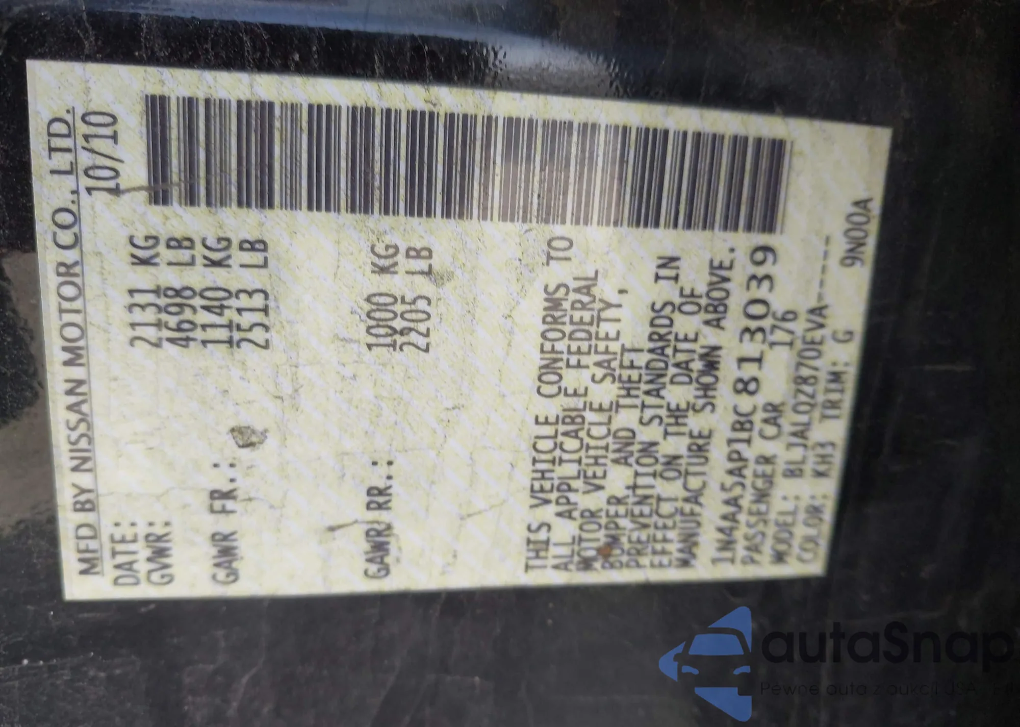 • VIN 1N4AA5AP1BC813039