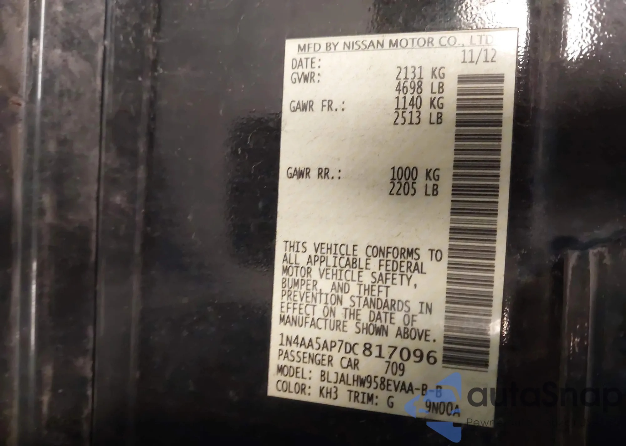 • VIN 1N4AA5AP7DC817096