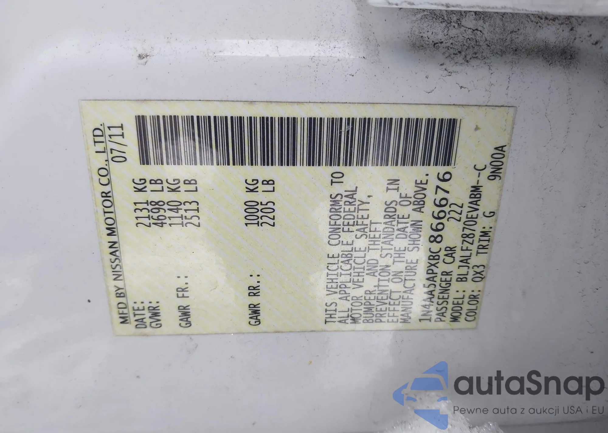 • VIN 1N4AA5APXBC866676