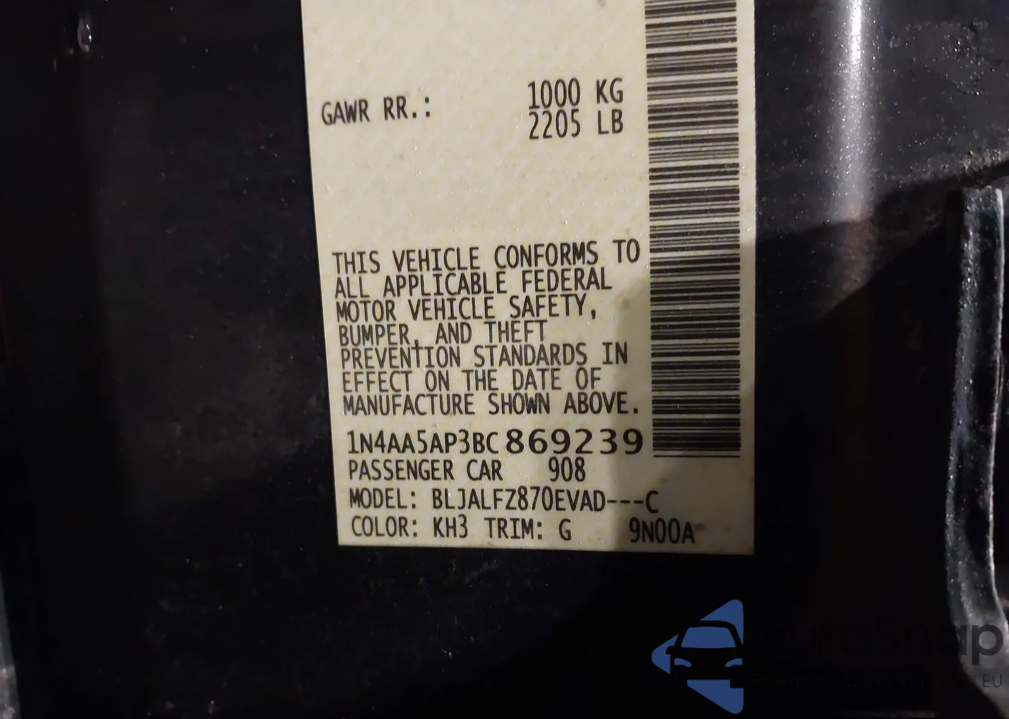 • VIN 1N4AA5AP3BC869239