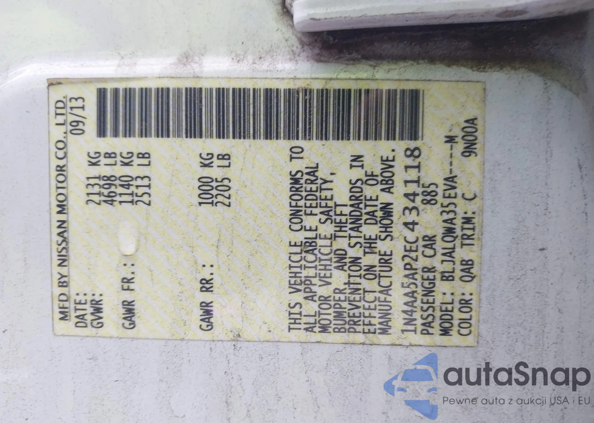 • VIN 1N4AA5AP2EC434118