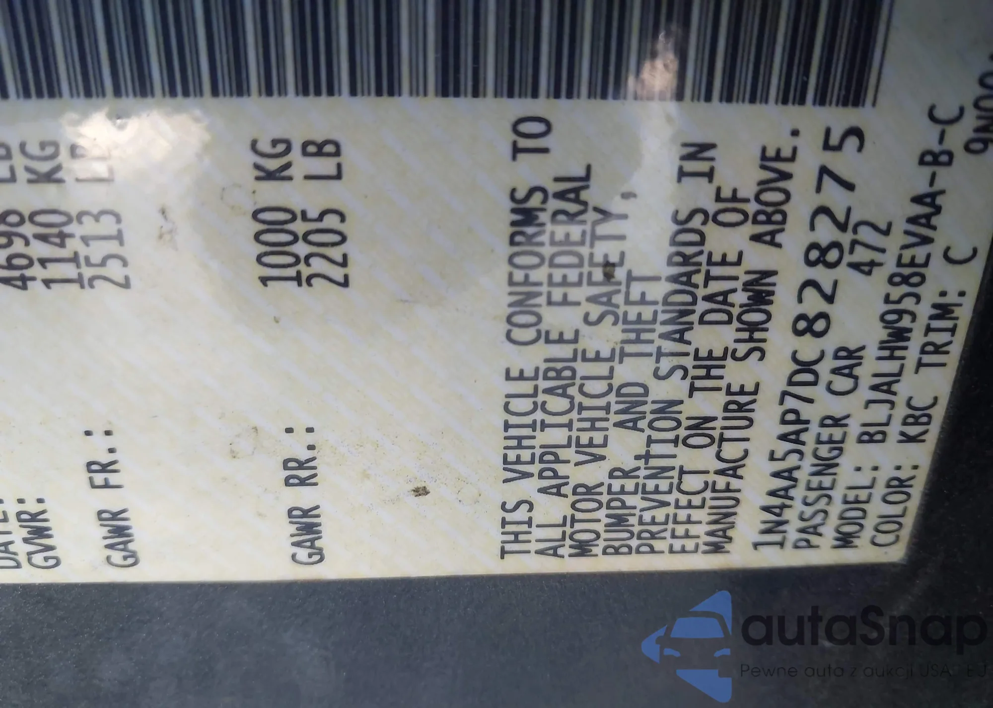 • VIN 1N4AA5AP7DC828275