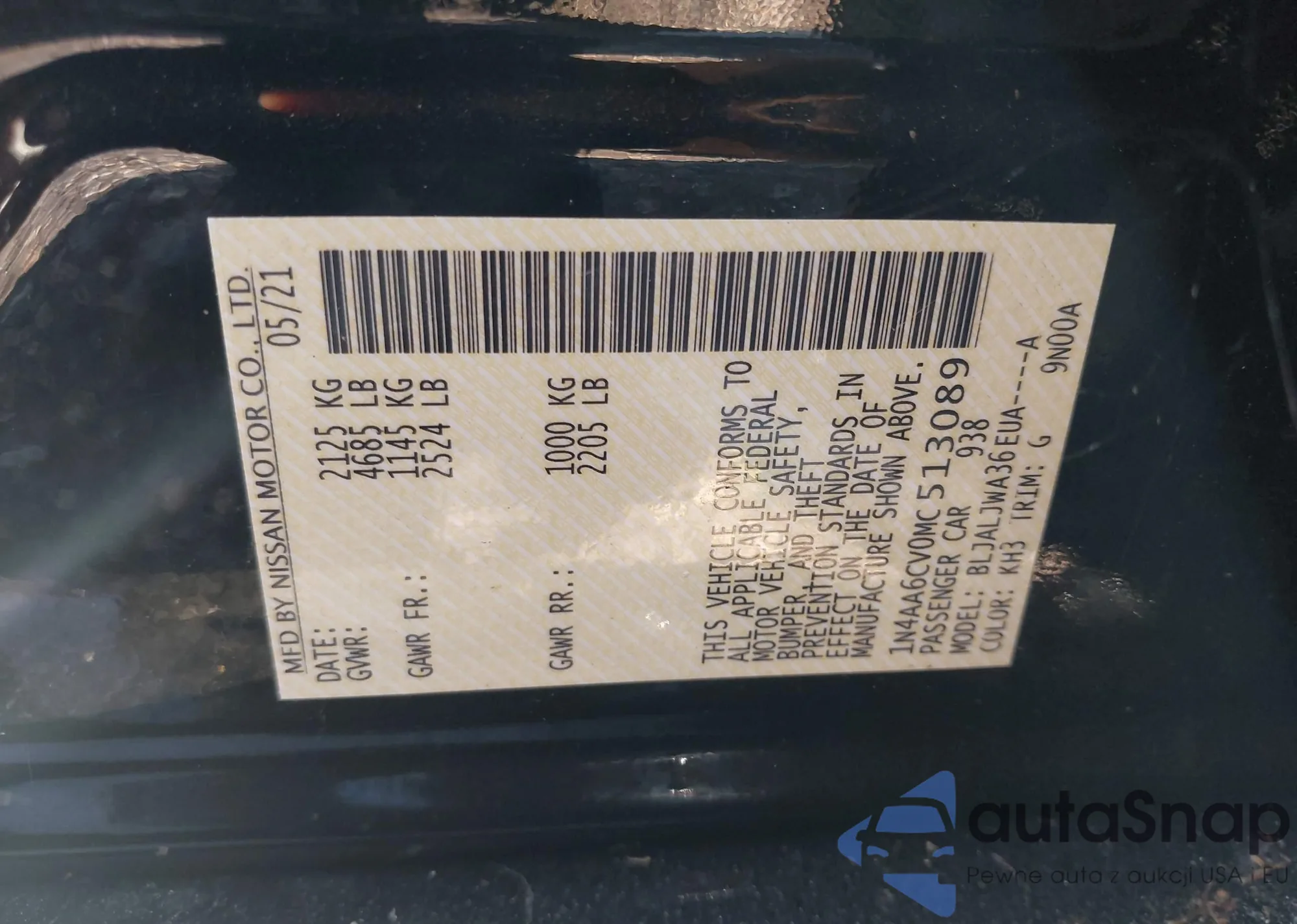 • VIN 1N4AA6CV0MC513089