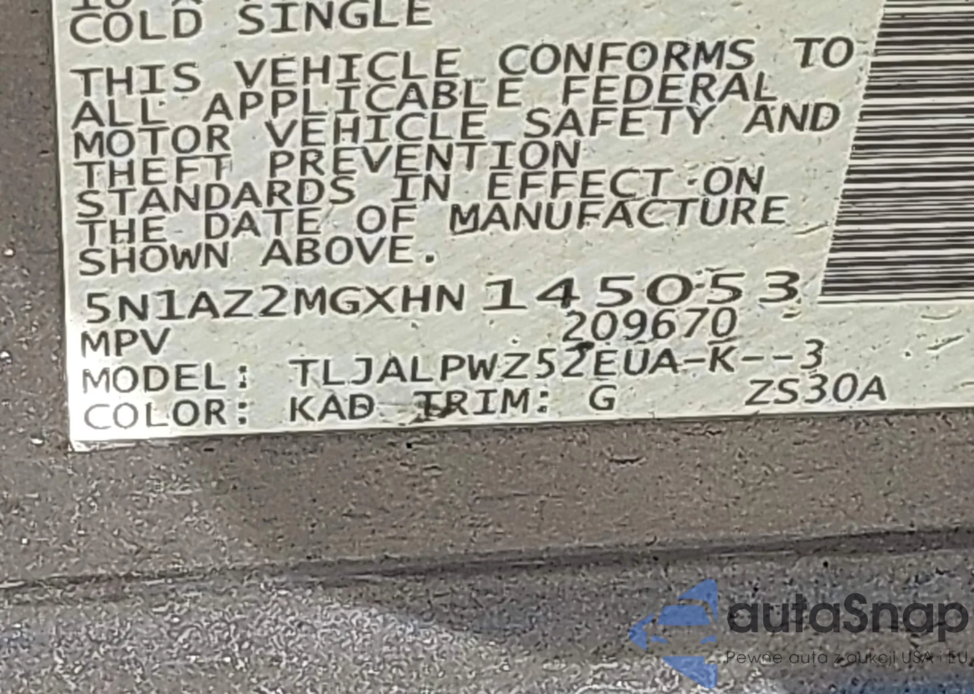 • VIN 5N1AZ2MGXHN145053