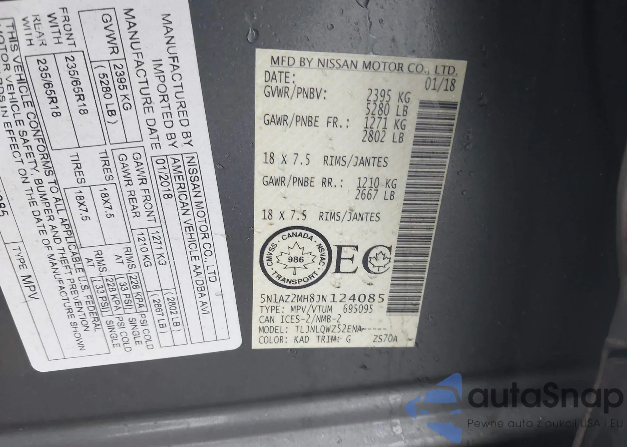 • VIN 5N1AZ2MG2JN105894