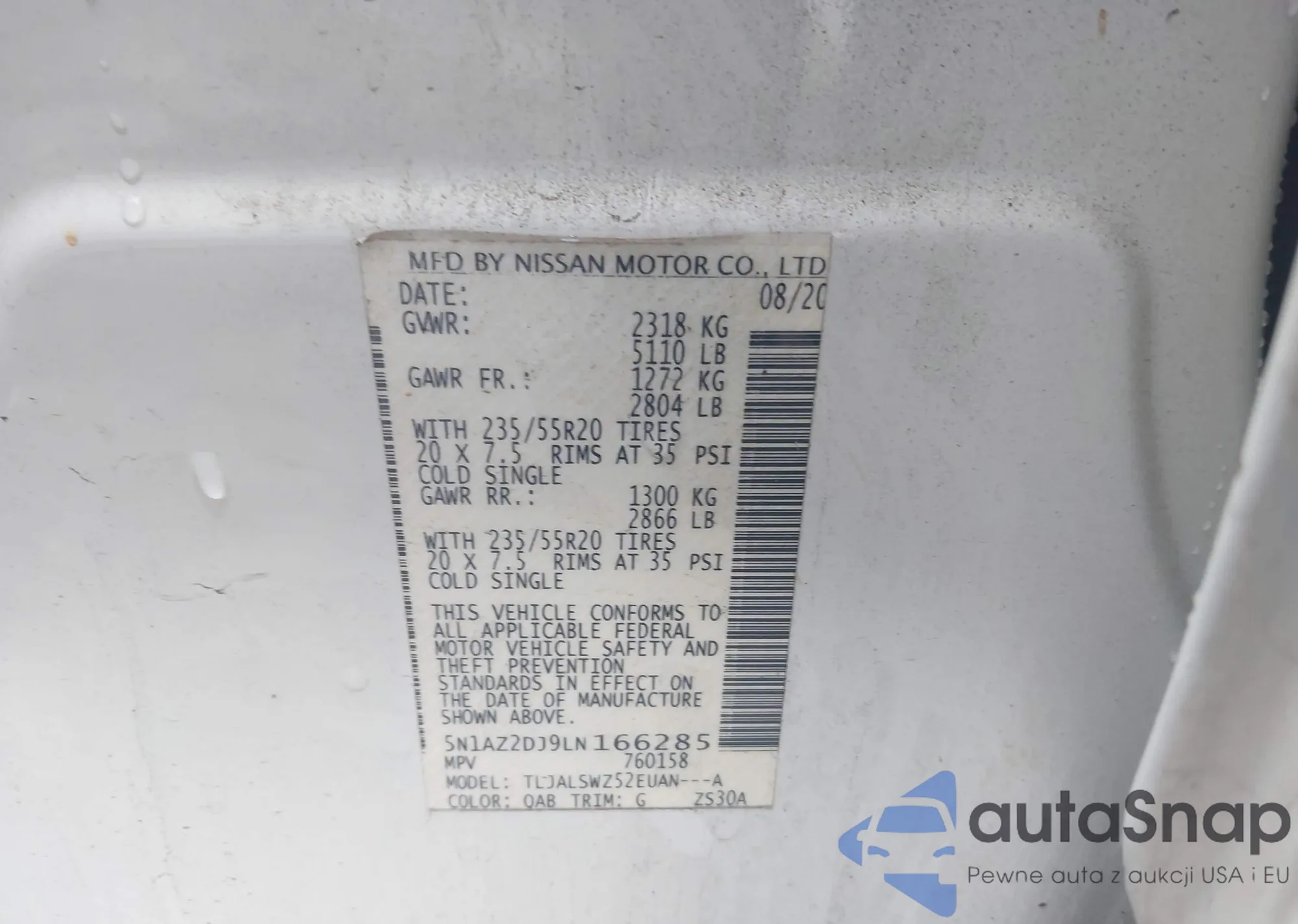 • VIN 5N1AZ2DJ9LN166285