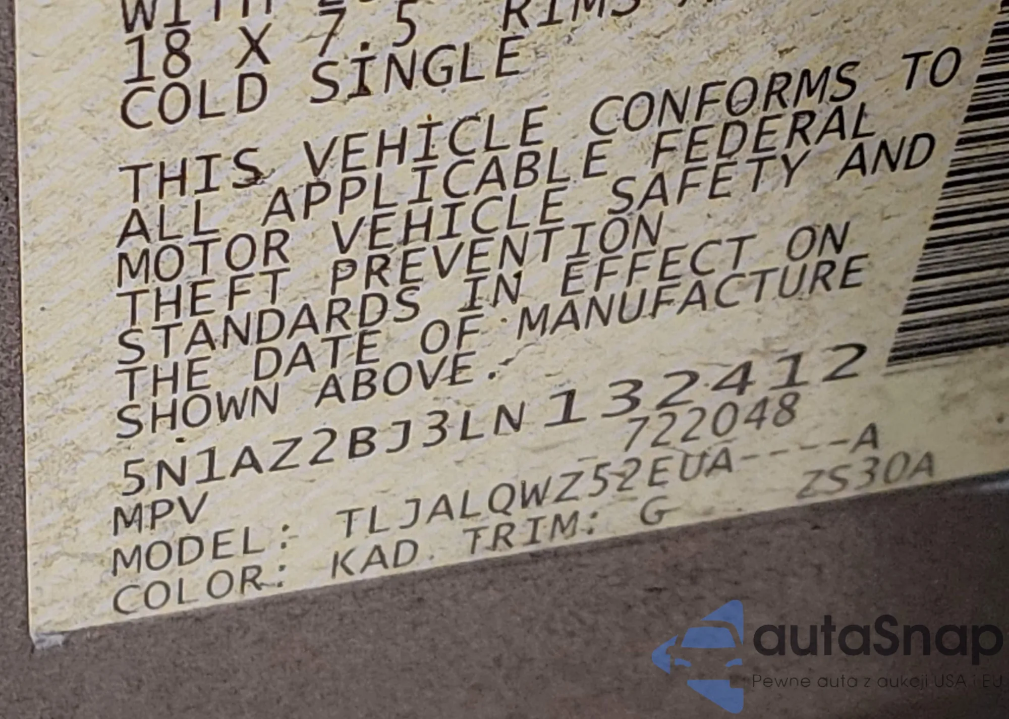 • VIN 5N1AZ2AJ0LN131445