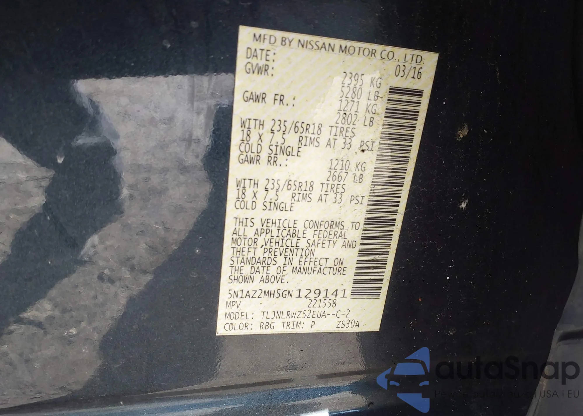 • VIN 5N1AZ2MH5GN129141