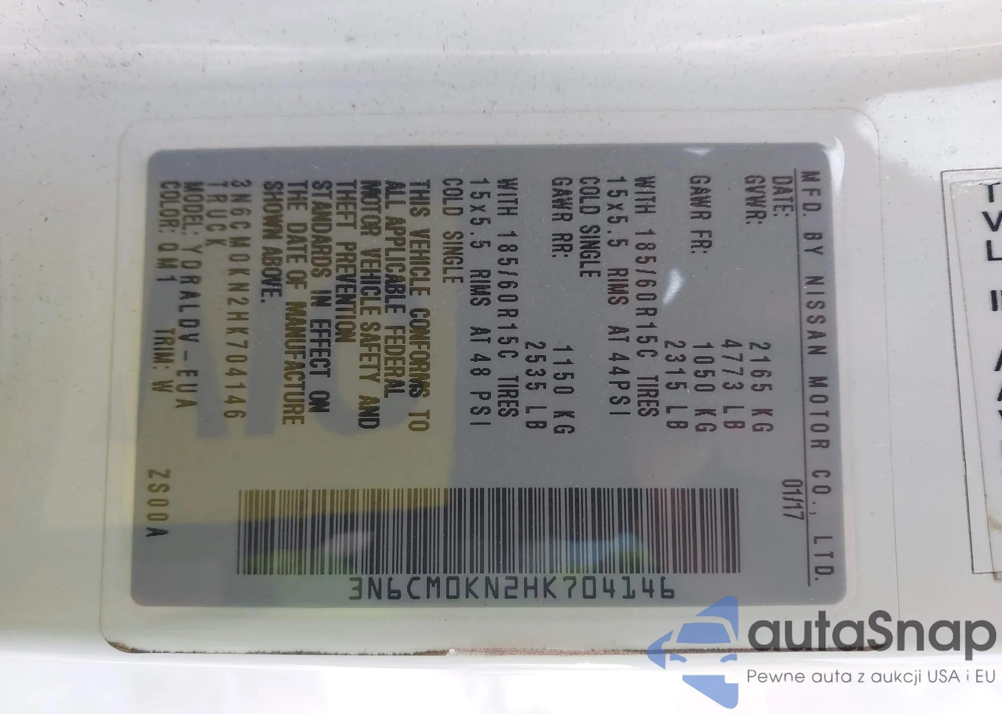 • VIN 3N6CM0KN2HK704146