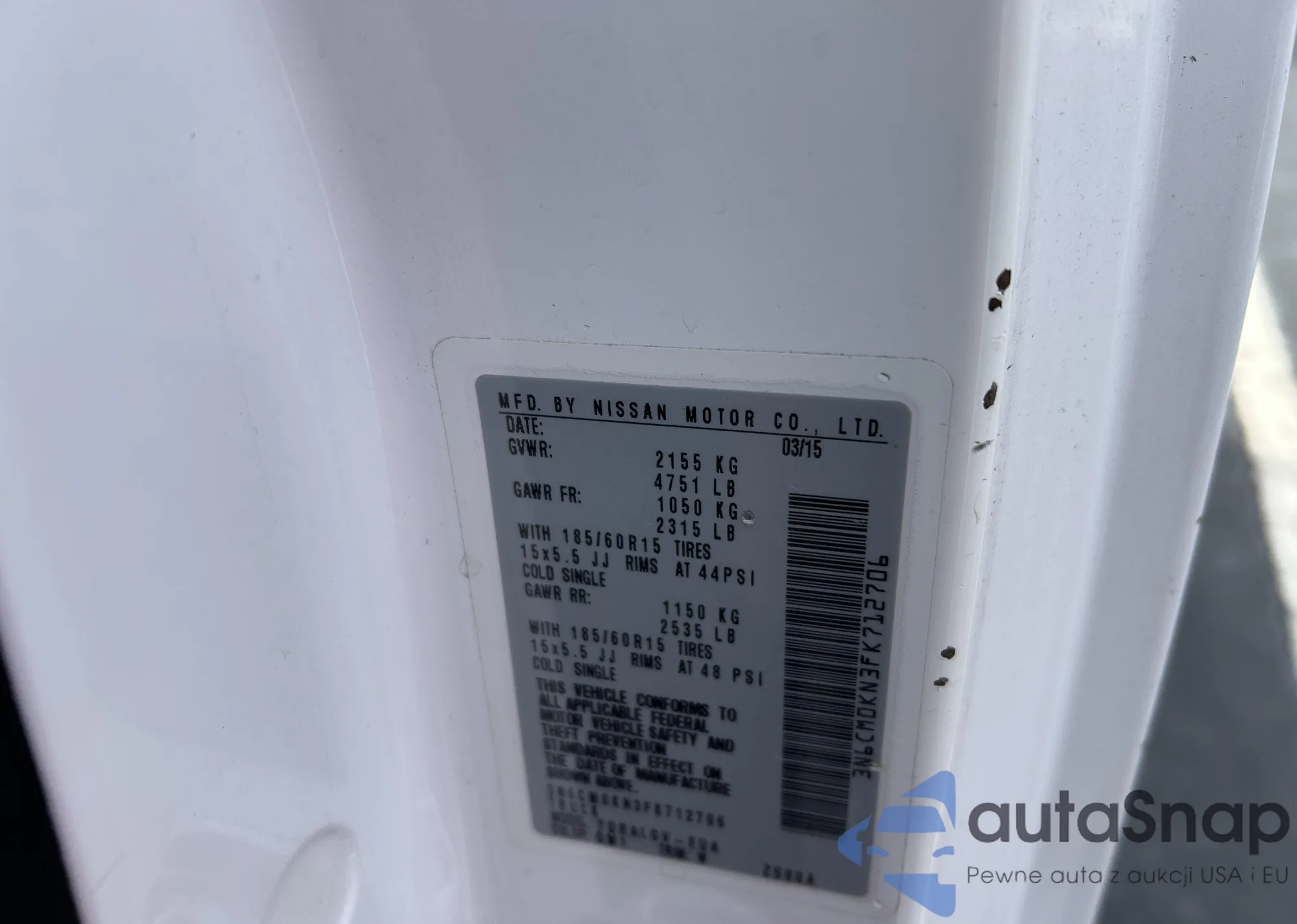 LOT: 44275769 VIN: 3N6CM0KN3FK712706