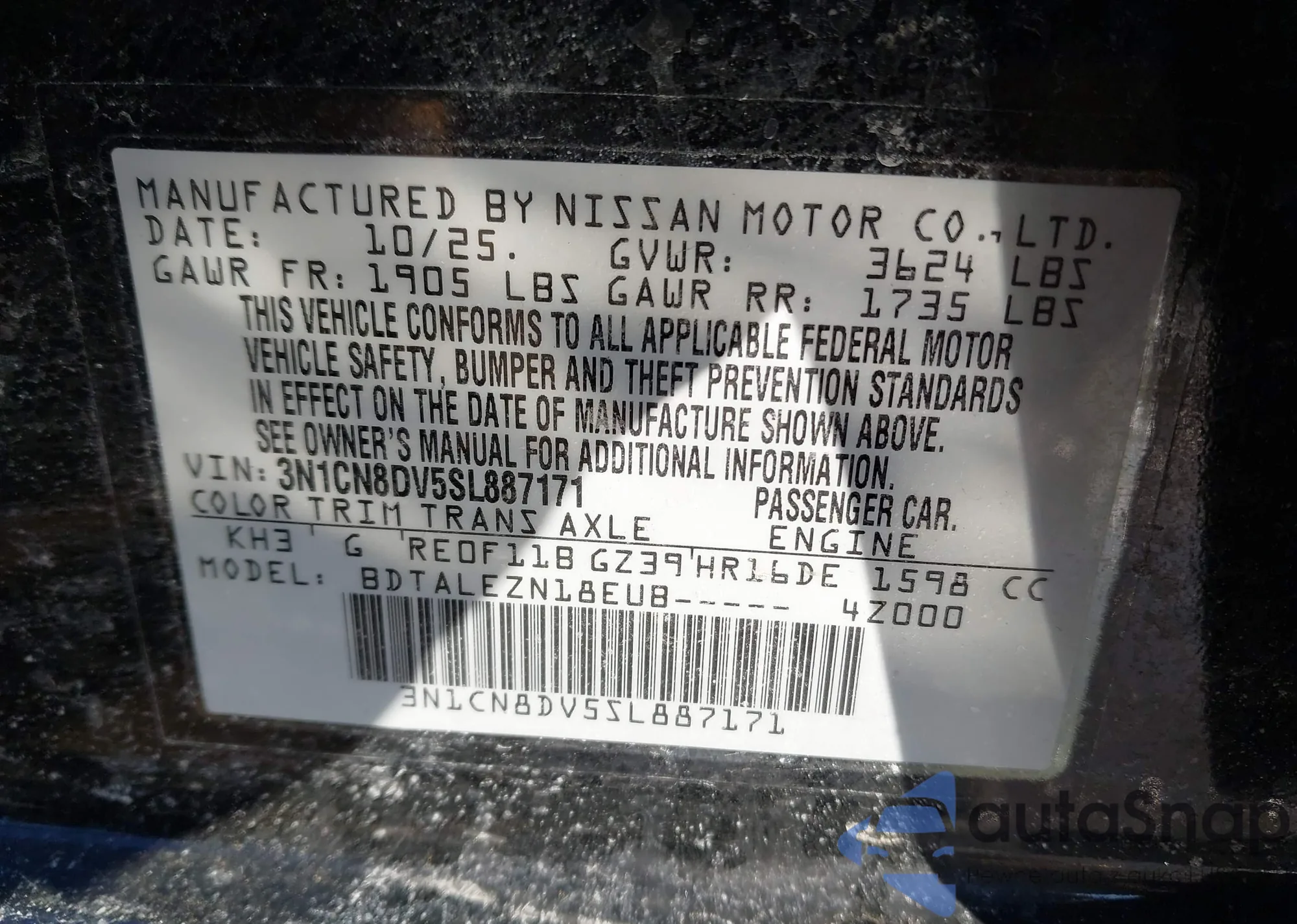 • VIN 3N1CN8DV5SL887171