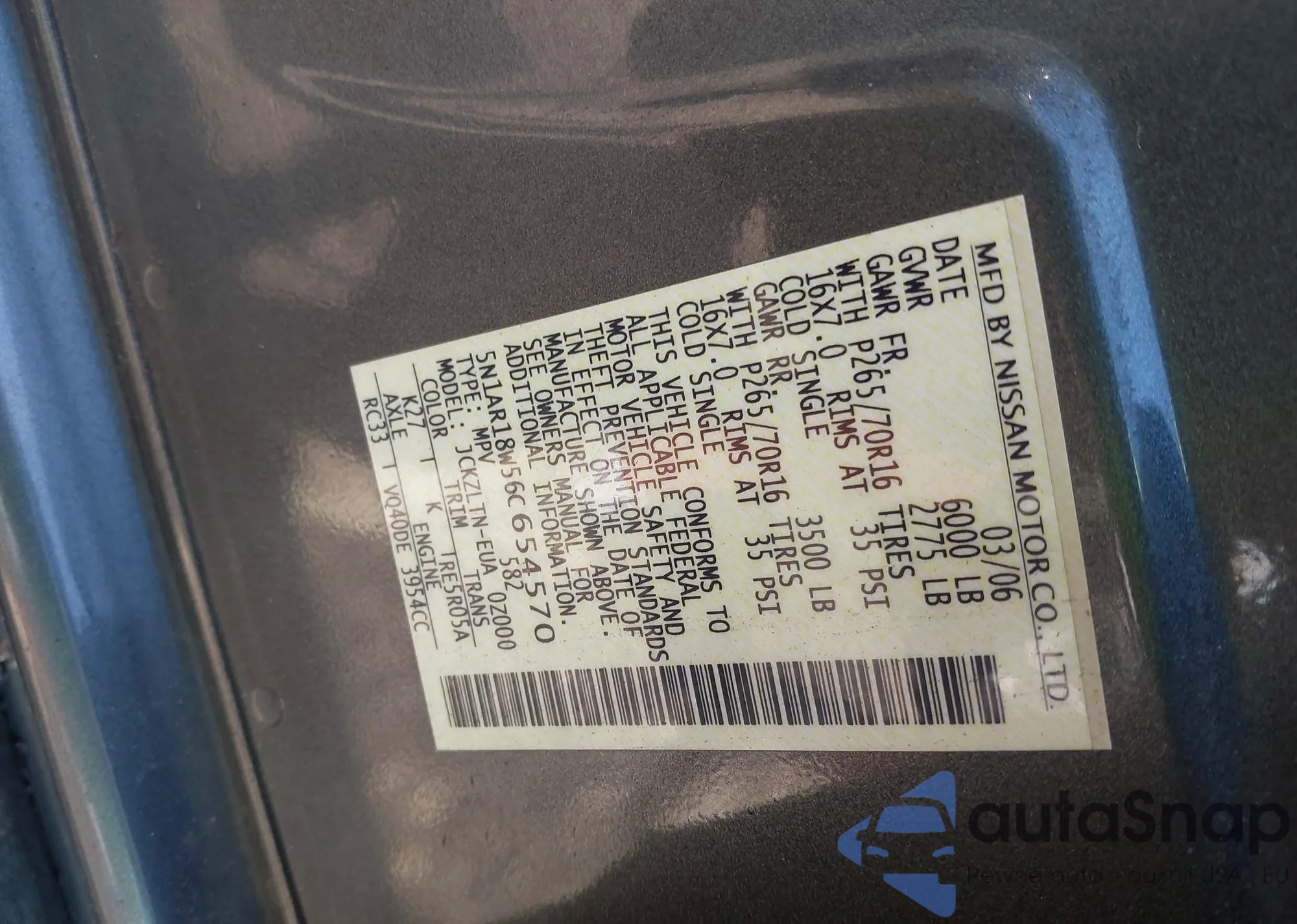 LOT: 39742159 VIN: 5N1AR18W56C654570