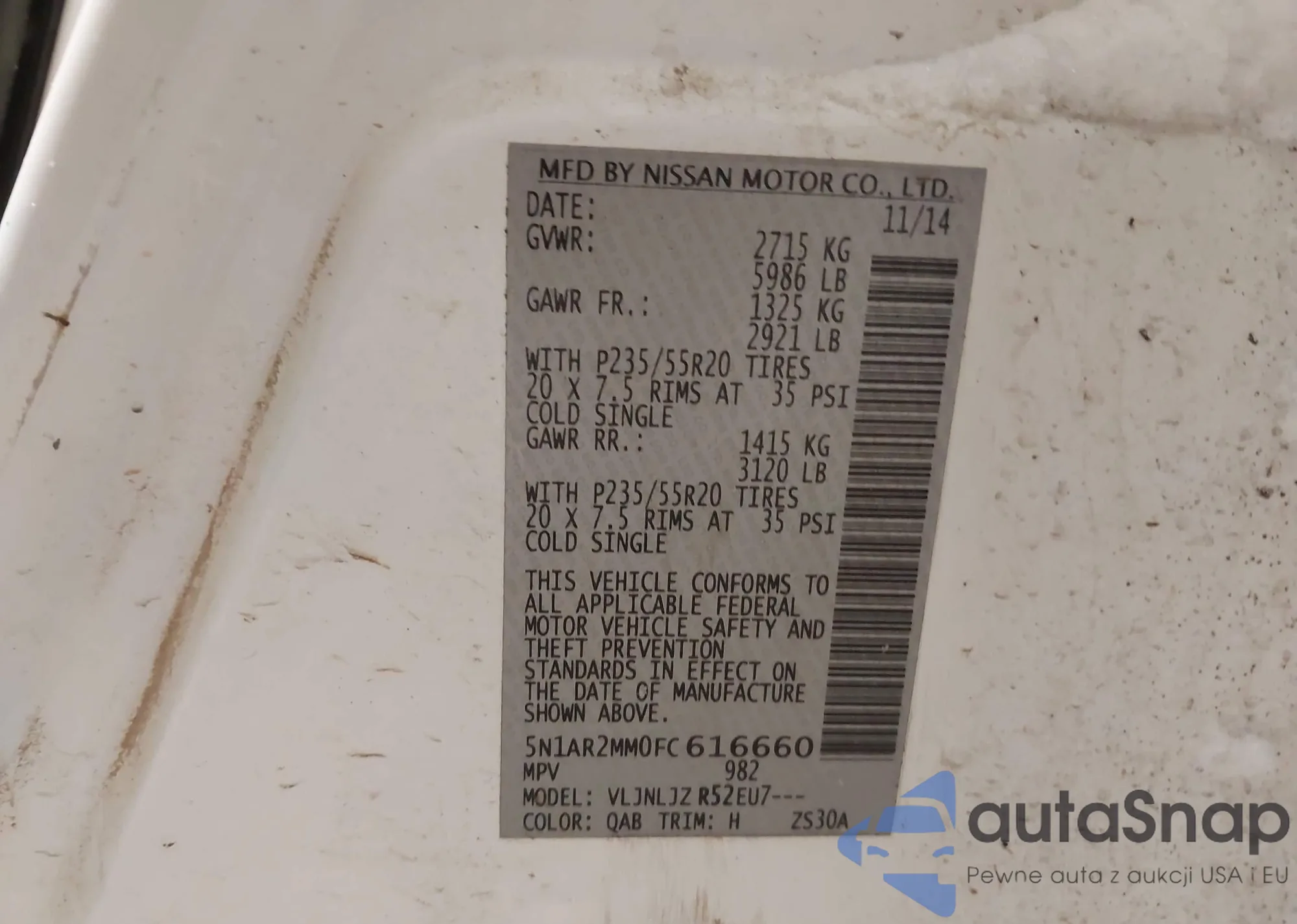 LOT: 96738795 VIN: 5N1AR2MN2FC674892