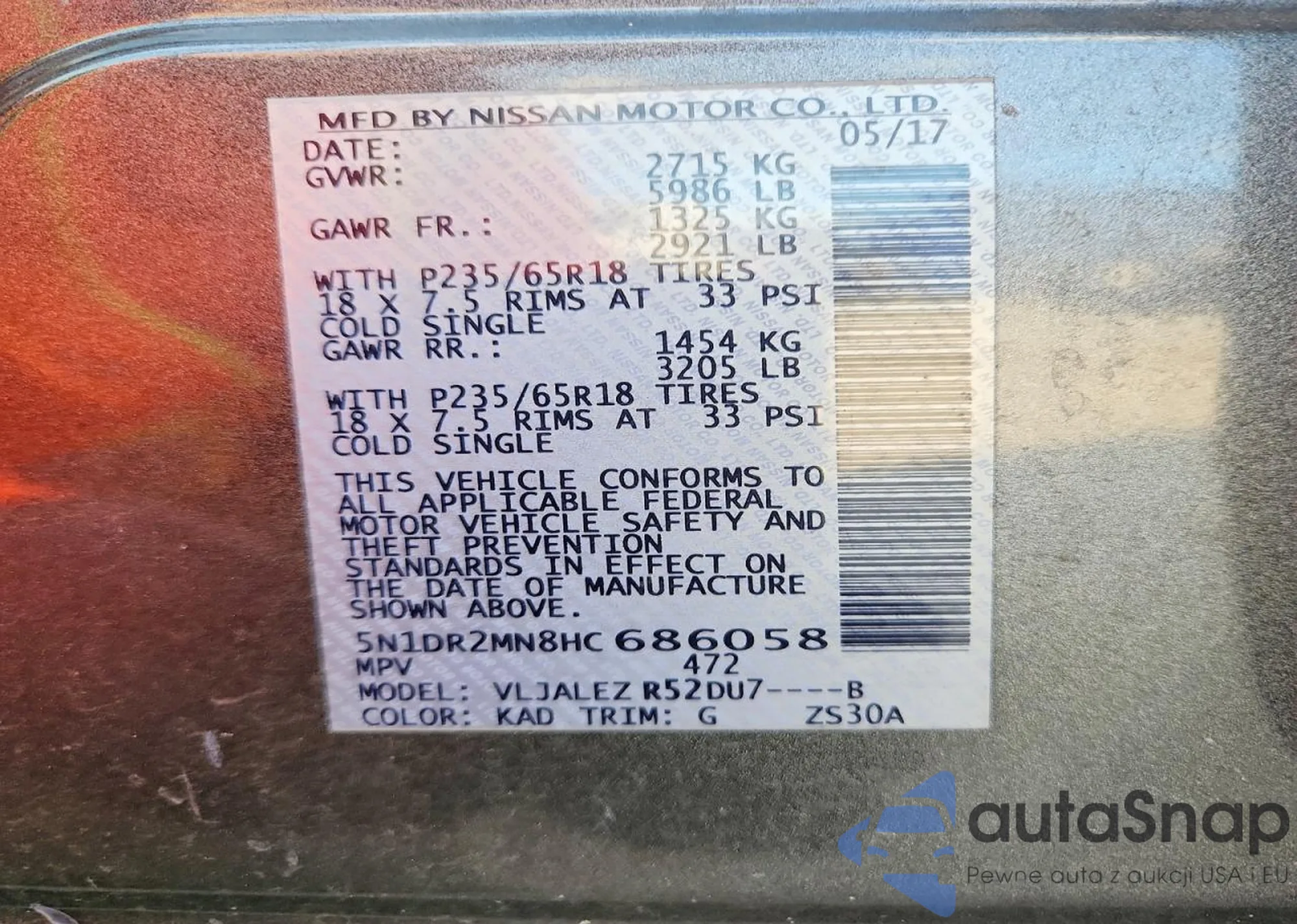 • VIN 5N1DR2MN8HC686058