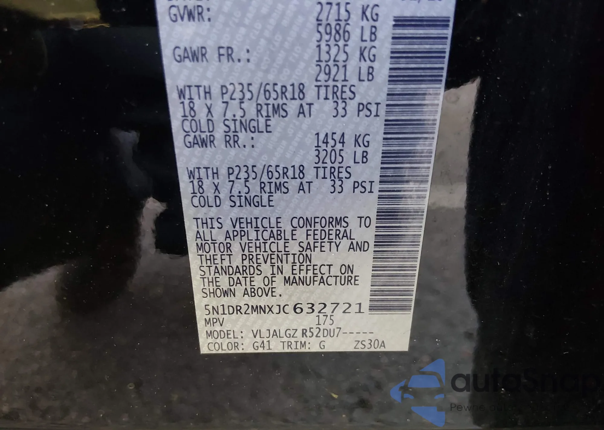 LOT: 44147457 VIN: 5N1DR2MNXJC632721