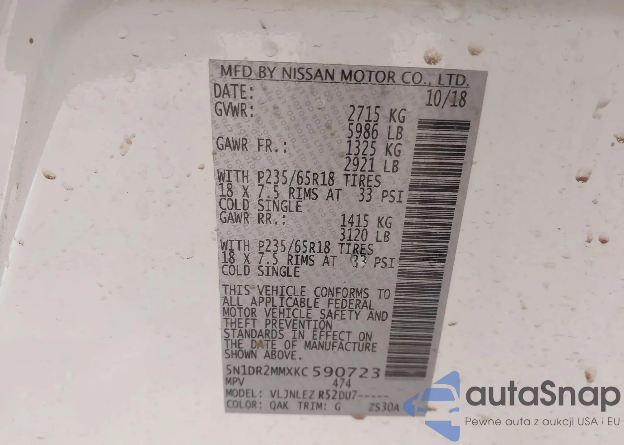 • VIN 5N1DR2MMXKC590723