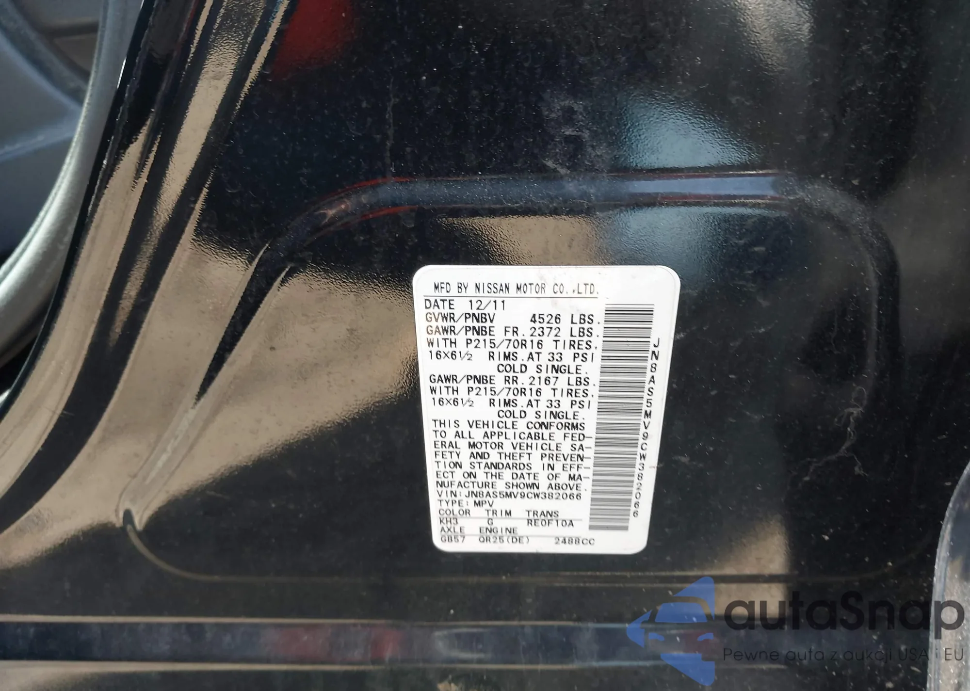 • VIN JN8AS5MV9CW382066