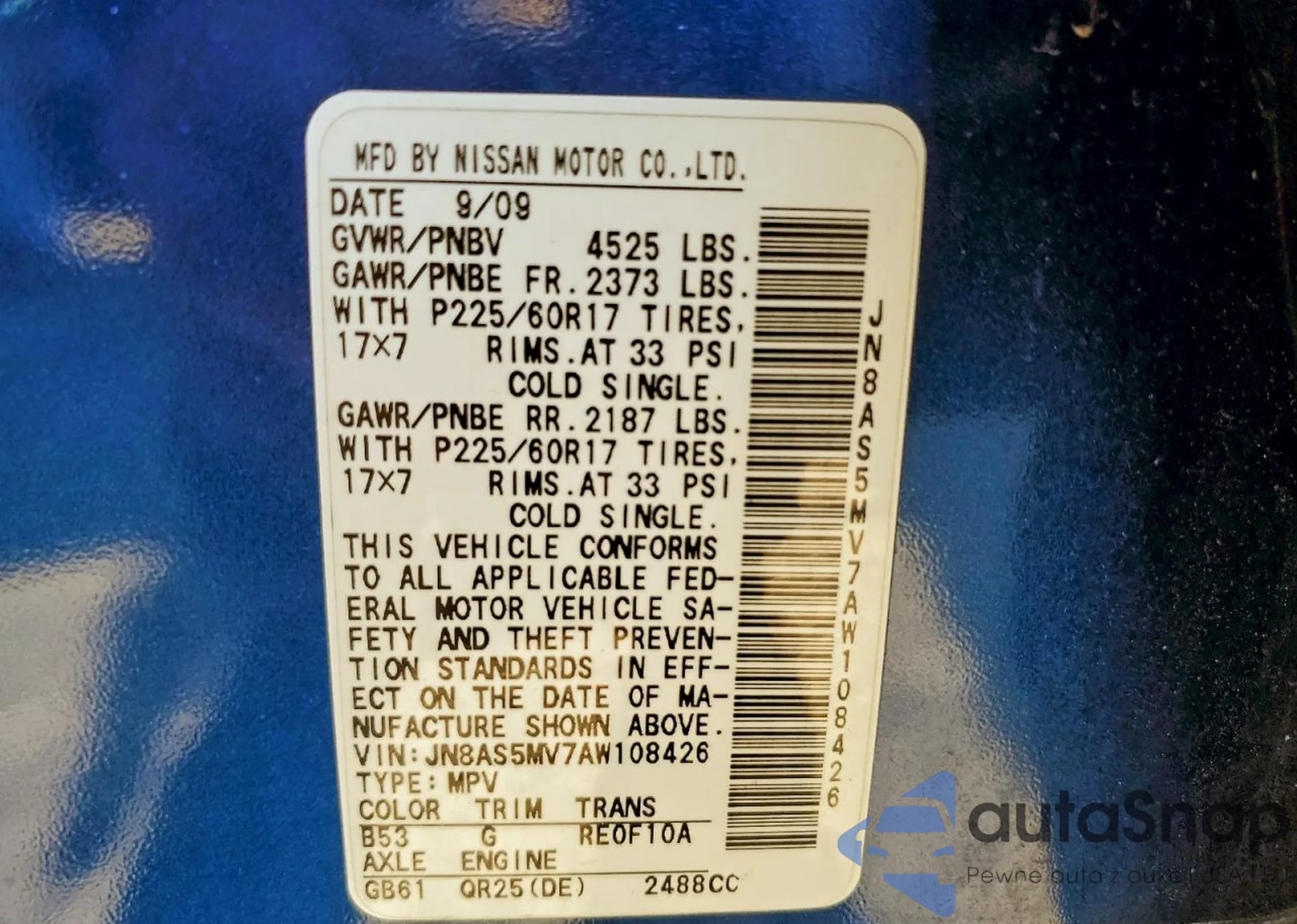 • VIN JN8AS5MV7AW108426